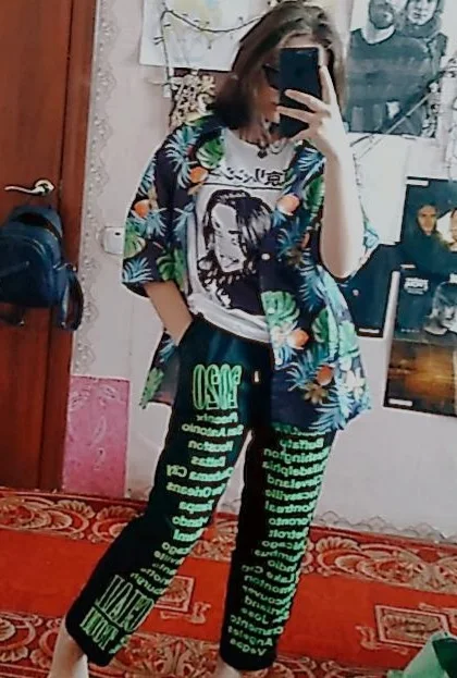 HOUZHOU-pantalones de pierna ancha con impresión de letra en pantalones, ropa de calle holgada Vintage, de cintura alta, estilo Palazzo, para otoño, 2022