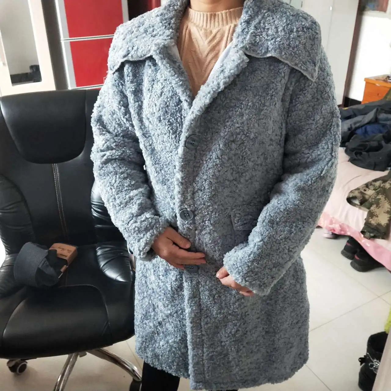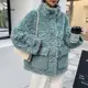 HSTAR-abrigo de lana de oveja esquilada para mujer, abrigo de piel gruesa compuesto de cordoncillo