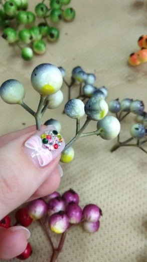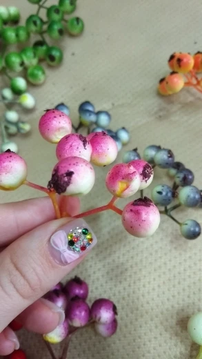 HUADODO-20 Uds. De estambre de flores de baya artificiales, fruta falsa, álbum de recortes, decoración de fiesta de boda y Navidad (1 Uds. = 9 cabezas)