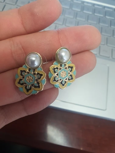 HUANZHI-pendientes de Metal con perlas de imitación esmaltadas para mujer, aretes pequeños, Estilo Vintage, geométrico, flor, fiesta, 2022