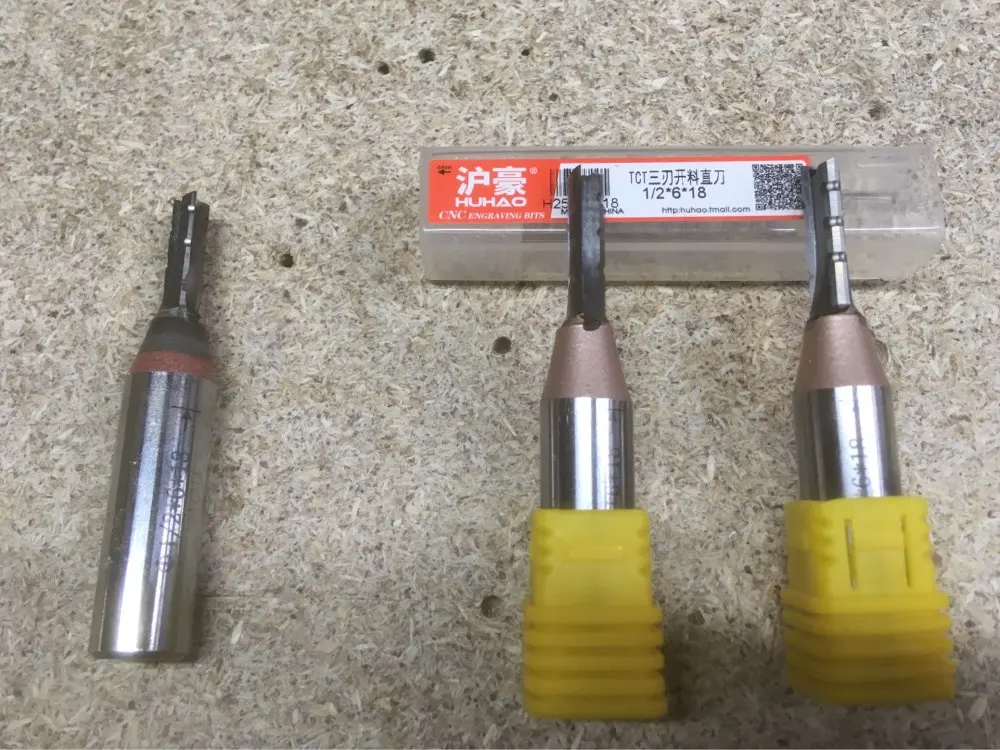 HUHAO 1 unid 3 flautas TCT cortador recto aglomerado talla de madera ranura recorte Router Bit Acero de tungsteno duro 1/2 caña endmill
