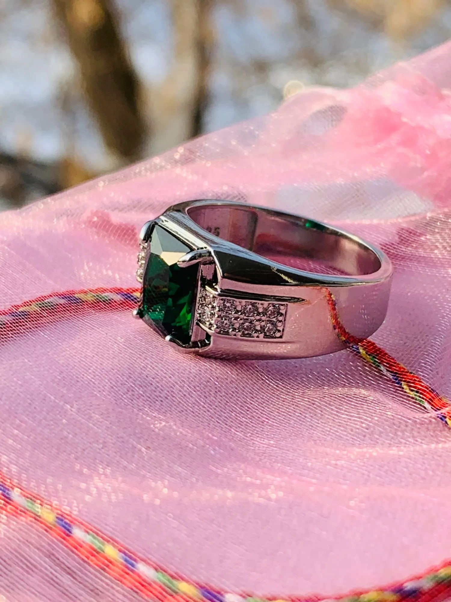 HuiSept-Anillo de plata 925 para hombre, joyería de moda, Esmeralda, zafiro, circonita, gemas, para dedo, accesorios de compromiso de boda