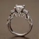 Huitan-Anillo de cristal de zirconio de 6 garras para mujer, joyería de boda, diseño único de dos tonos, anillo de compromiso femenino elegante