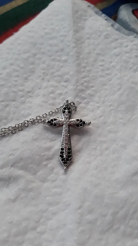 Huitan-collar con colgante de Cruz de doble capa para mujer, collar de circonia cúbica versátil en blanco y negro, diseño de piedra, para fiesta, decorativo