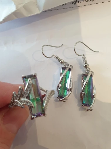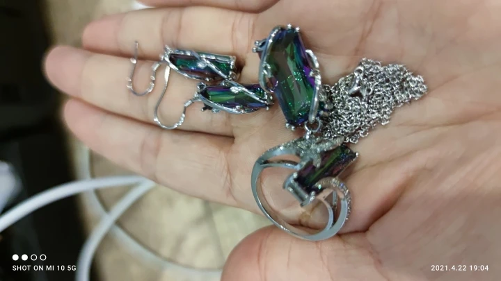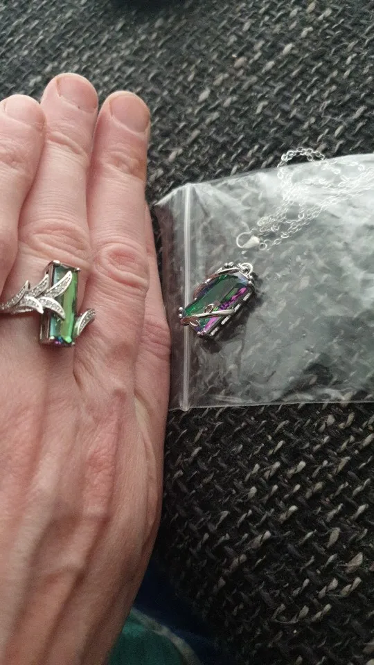 Huitan-Conjunto de anillos y collar de piedra Rectangular multicolor, diseño novedoso, fiesta de aniversario, joyería para mujer, juego de venta directa de fábrica