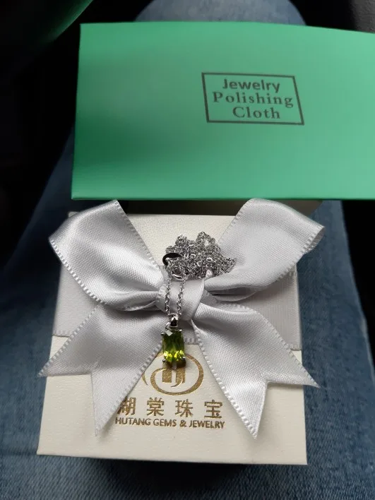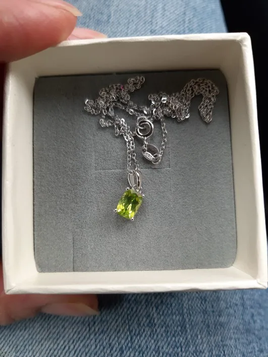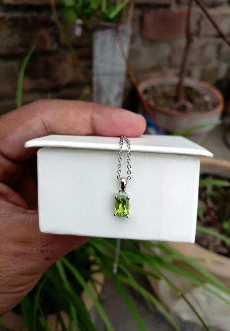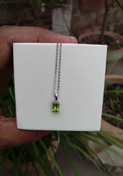 Hutang colgante de plata 925 genuino cojín gema con forma de peridoto de plata 925 sólida cadena bien Simple de la joyería para las mujeres