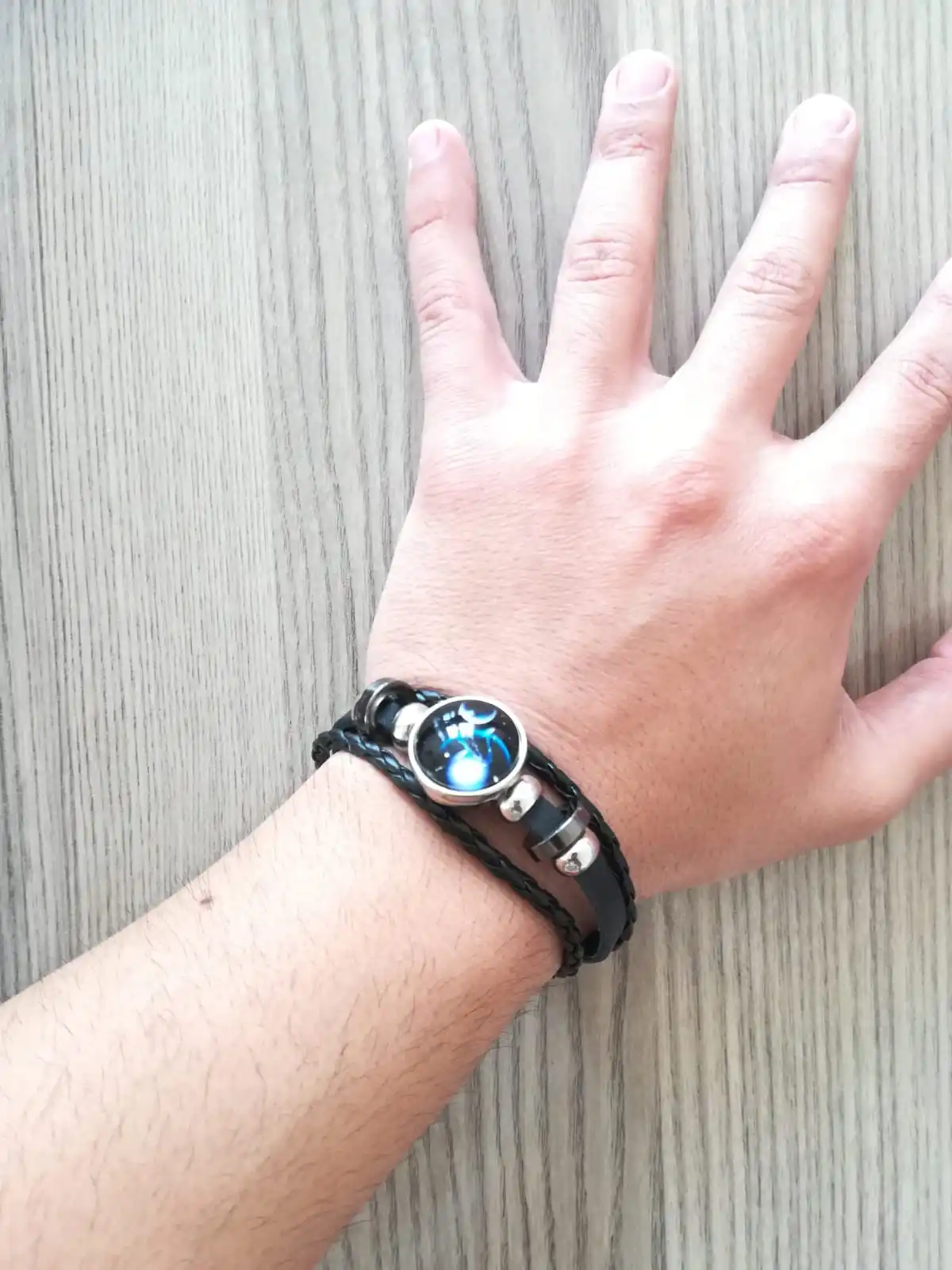 Leather Zodiac Sign with Beads Bangle Bracelets for Men