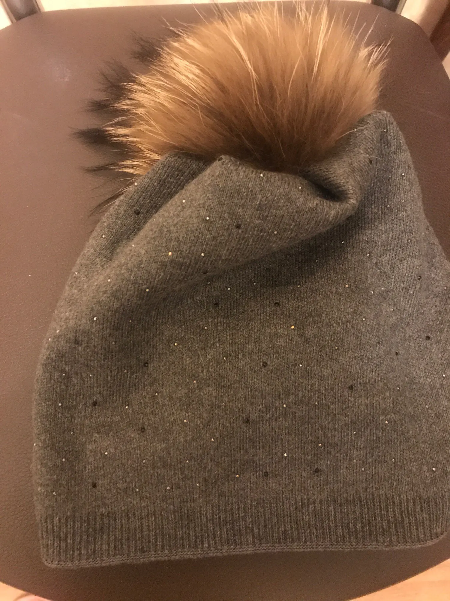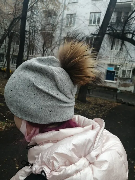IMISSU-Sombrero de invierno de lana tejido para mujer, gorro de piel de mapache auténtica con Pompón, Gorros de esquí de colores sólidos, sombrero Causal para mujer