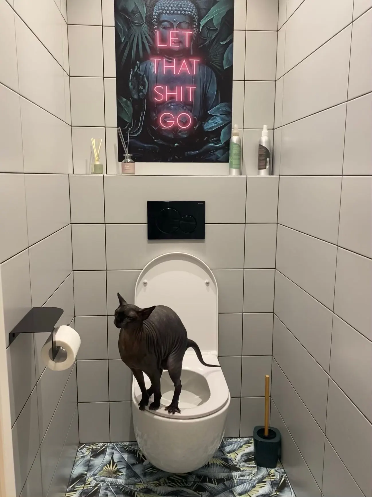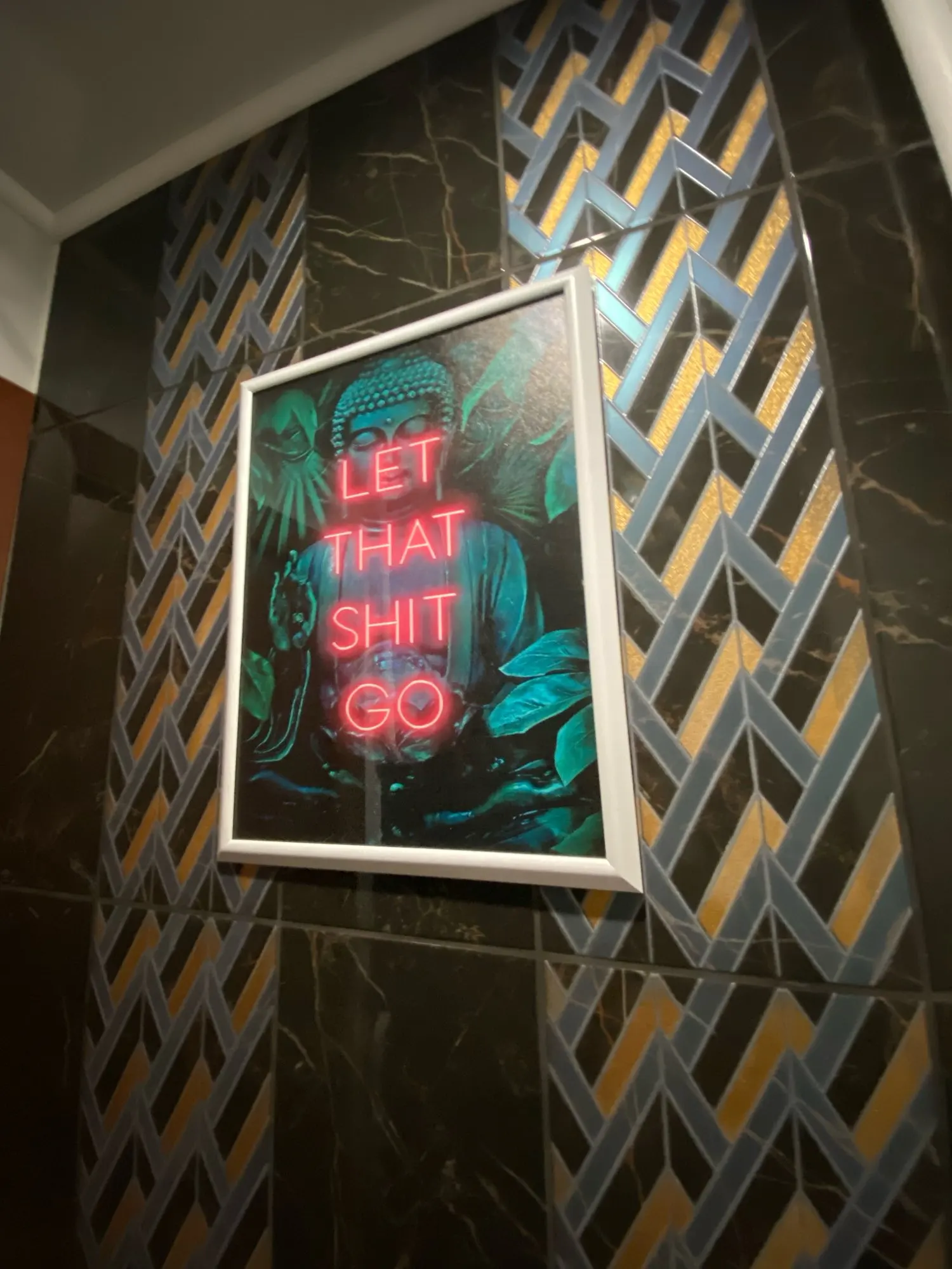 Impresiones en lienzo de Buda para decoración de baño, póster de Let this Shit Go, cita, arte de baño para mujer, imagen de pared