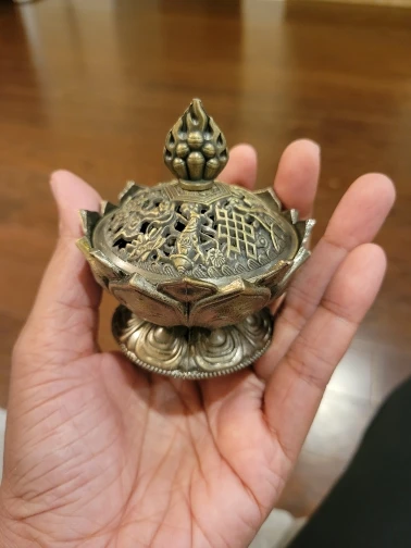 Incienso de loto sagrado en 2 colores con aromas de flores, quemador de incienso budista, Mini incienso de bronce de aleación de Zinc para decoración del hogar