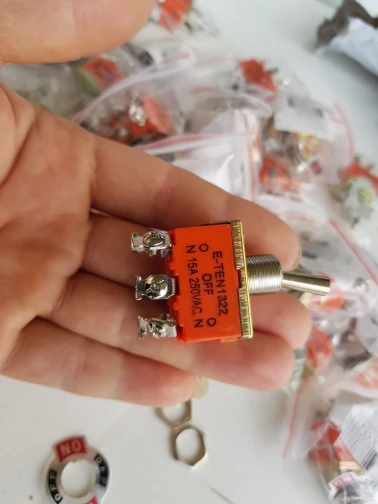 Interruptor de palanca E-TEN1122 3 terminales ON-OFF-ON 3 posiciones 3 Pin Swithes 250V 15A AC con tapas de interruptor impermeables de 12mm naranja