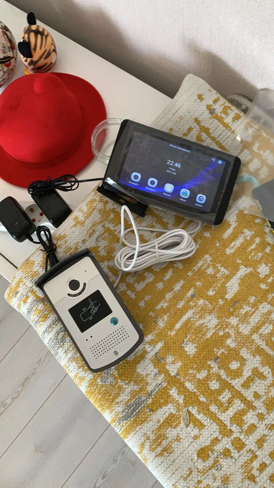 IP wifi video Sistema de timbre de portero automático video inteligente telefonillo con inalámbrico de 7 "pantalla táctil HD cable de vídeo Puerta de teléfono Cámara RFID