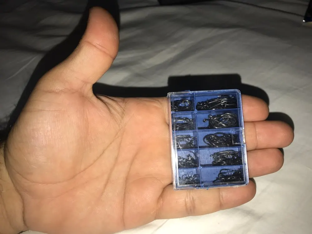 JACKFISH-Conjunto de anzuelos de pesca de acero al carbono, anzuelos de pesca de tamaño variado, plantilla de anzuelos con púas, accesorios de pesca, 100 Uds.