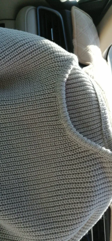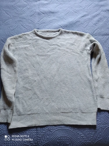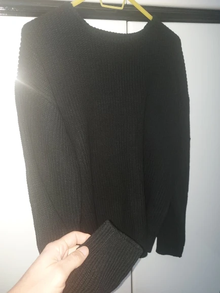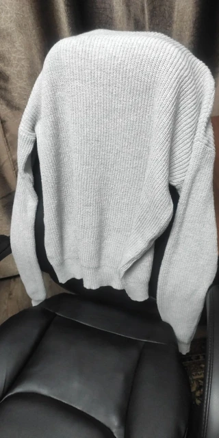 mangas muy largas y cuello más ancho que en la foto