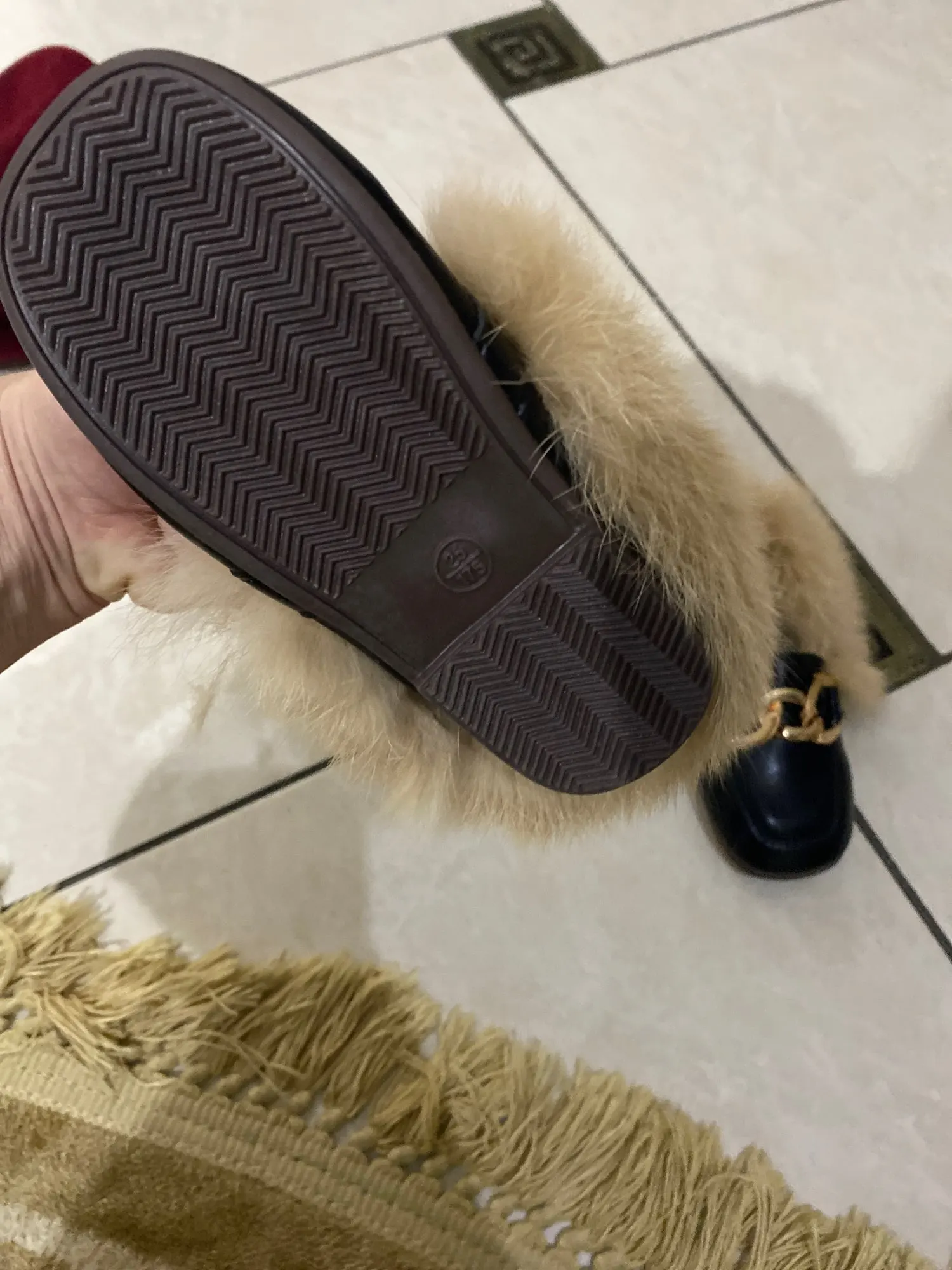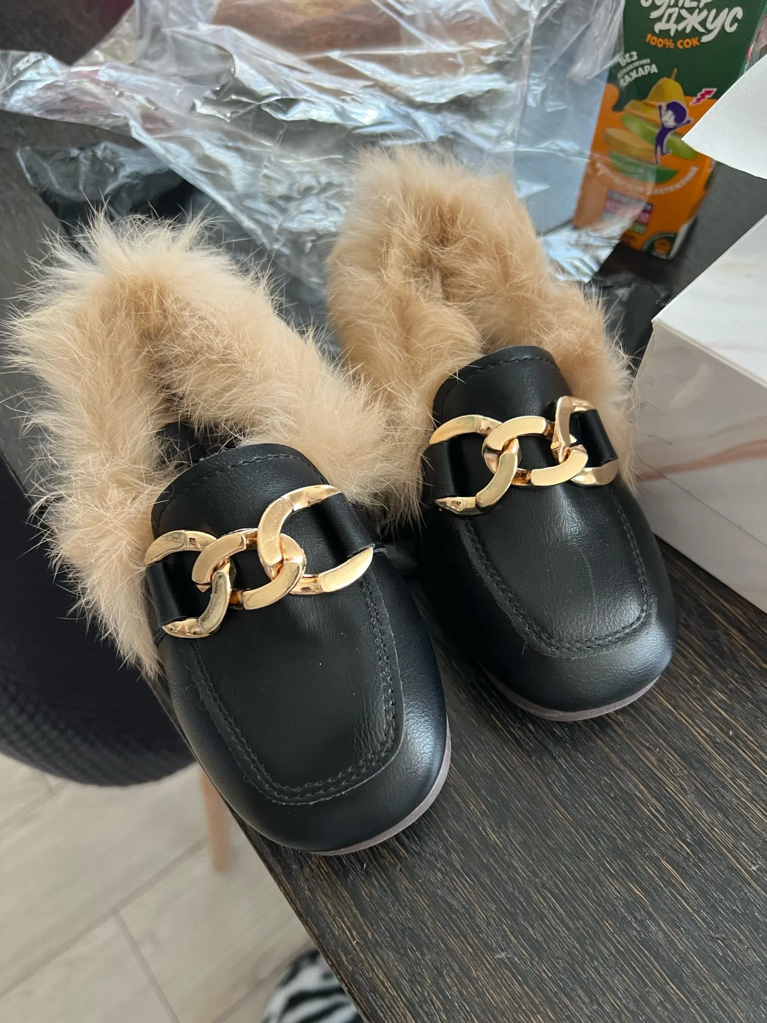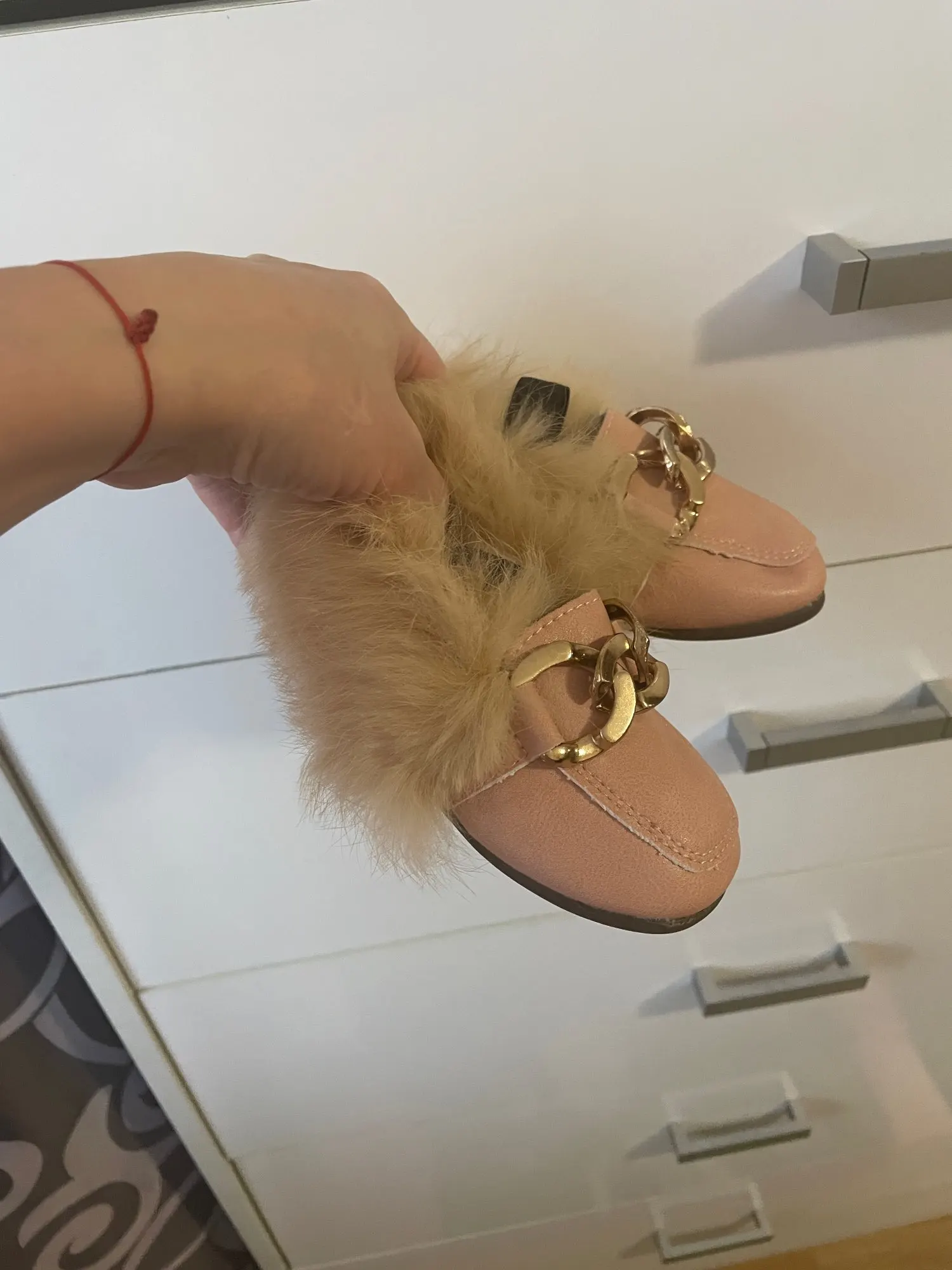 JGVIKOTO-zapatos de otoño e invierno para niñas, mocasines cálidos de algodón con Oso de felpa esponjoso de piel para niños con cadena de Metal, mocasines planos para niños