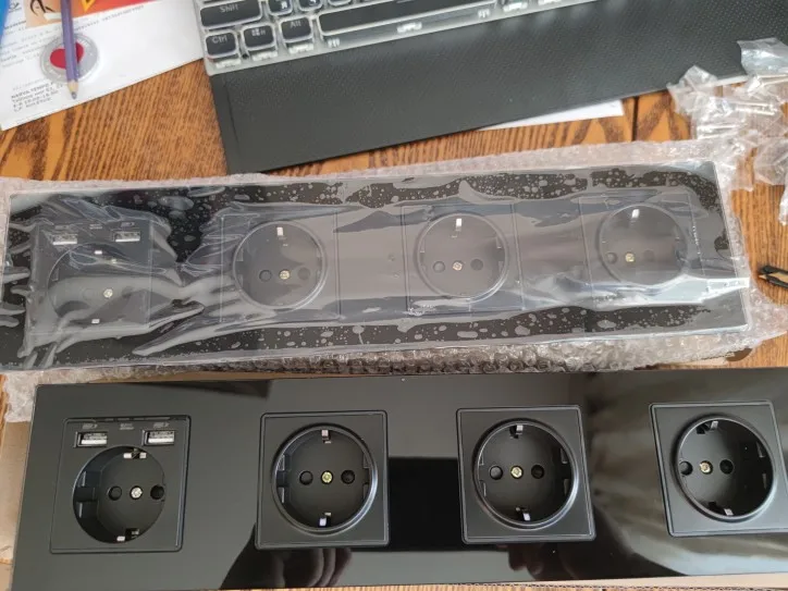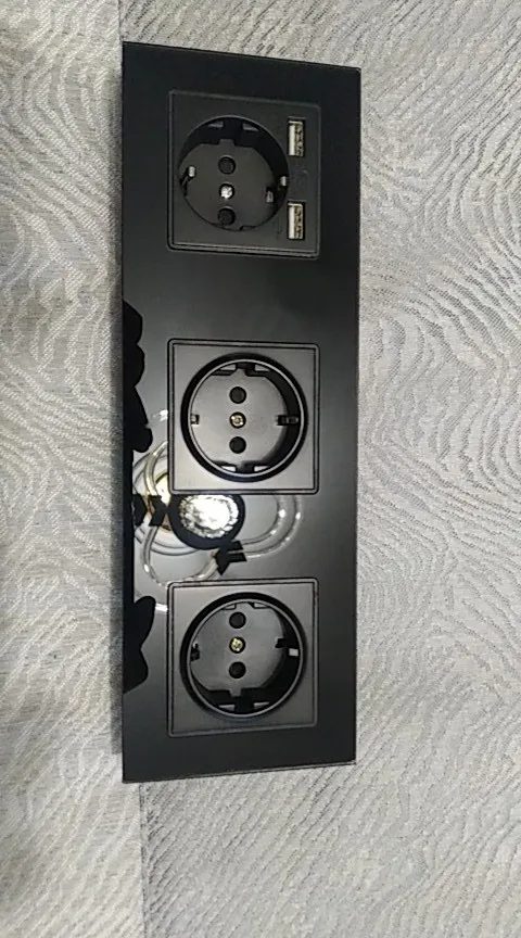 Jhjch-enchufe de alimentación de 3 Marcos EU, toma de corriente con conexión a tierra de 16a, con salida USB, panel de vidrio de 258mm * 86mm