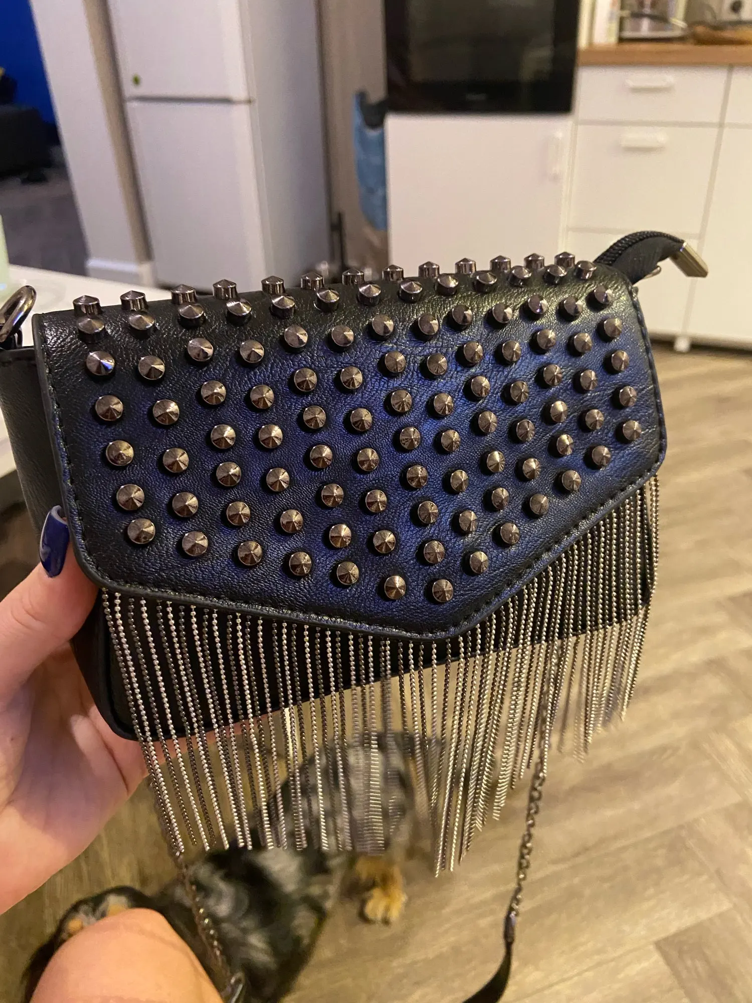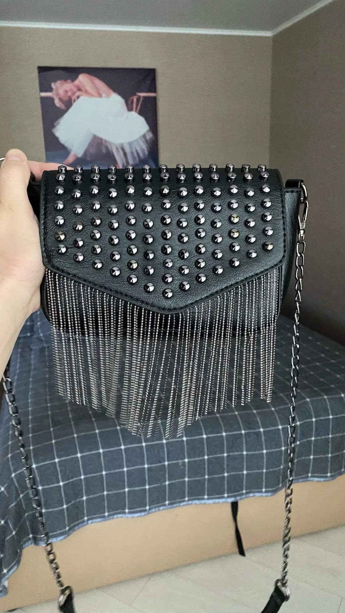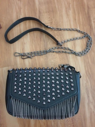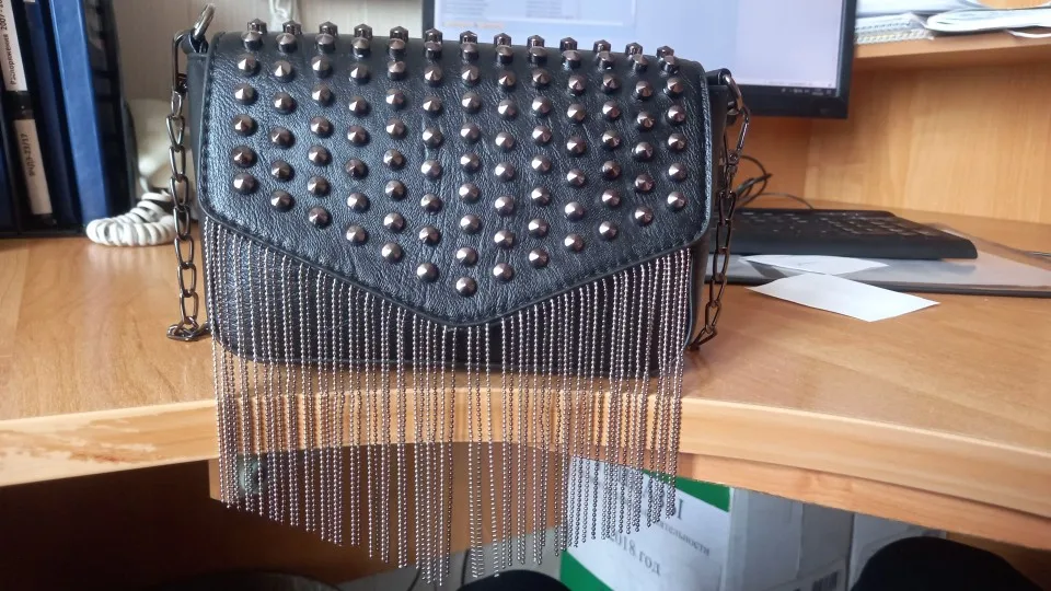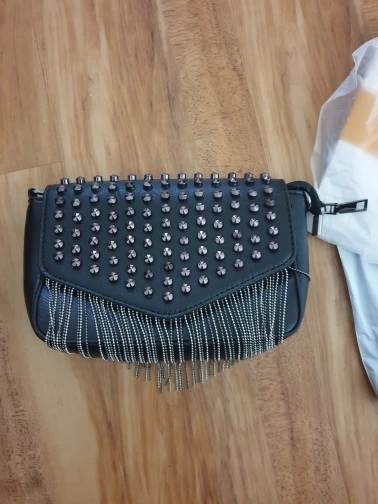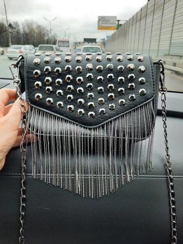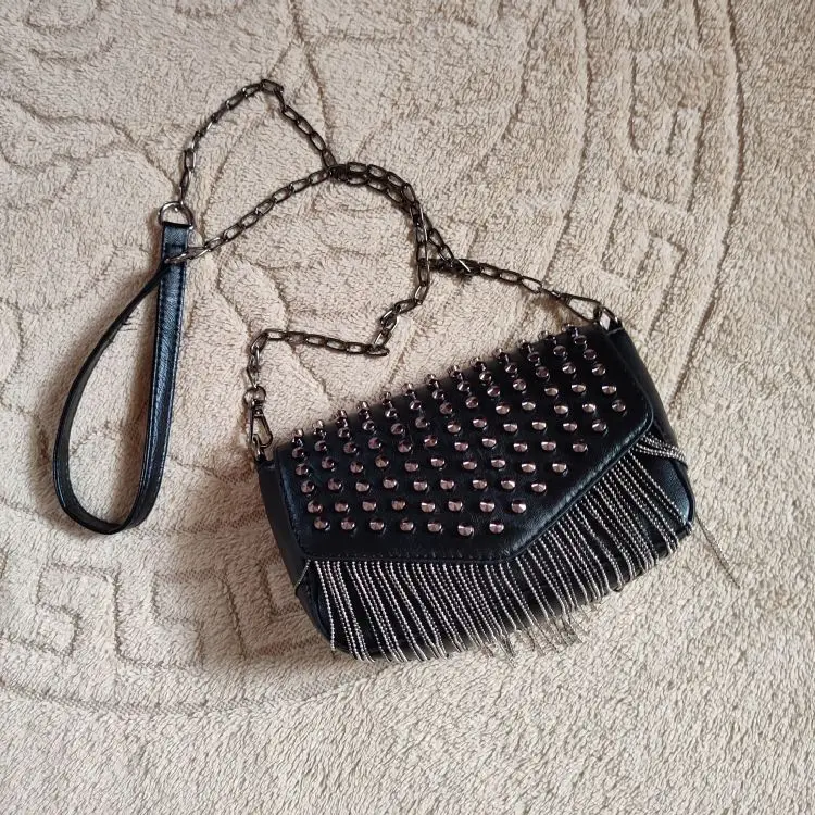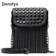 JIEROTYX-Mini bolso de hombro con cadena con diamantes y borlas, cruzado, remaches de cuero negro, bolso femenino