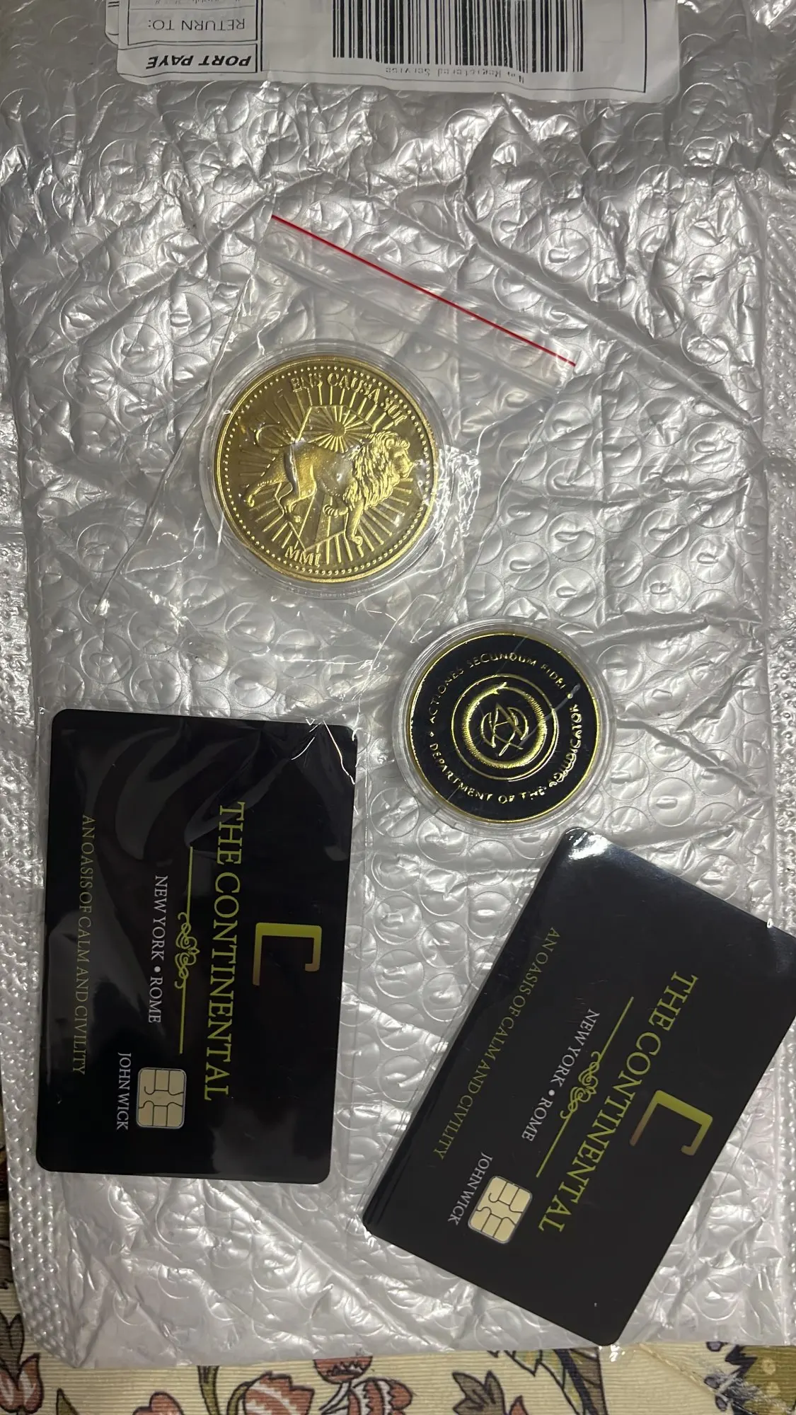 John Wick película Moneda de Oro Cosplay Continental Hotel tarjeta juez negro medallón Keanu Reeves colección de Fans Accesorios