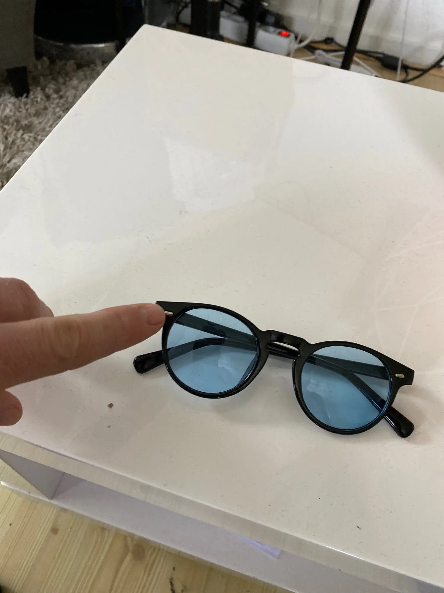Johnny Depp-gafas De Sol redondas para hombre, lentes De Sol masculinas De estilo redondo con tintado transparente, marca De lentes De diseño para fiesta, color azul