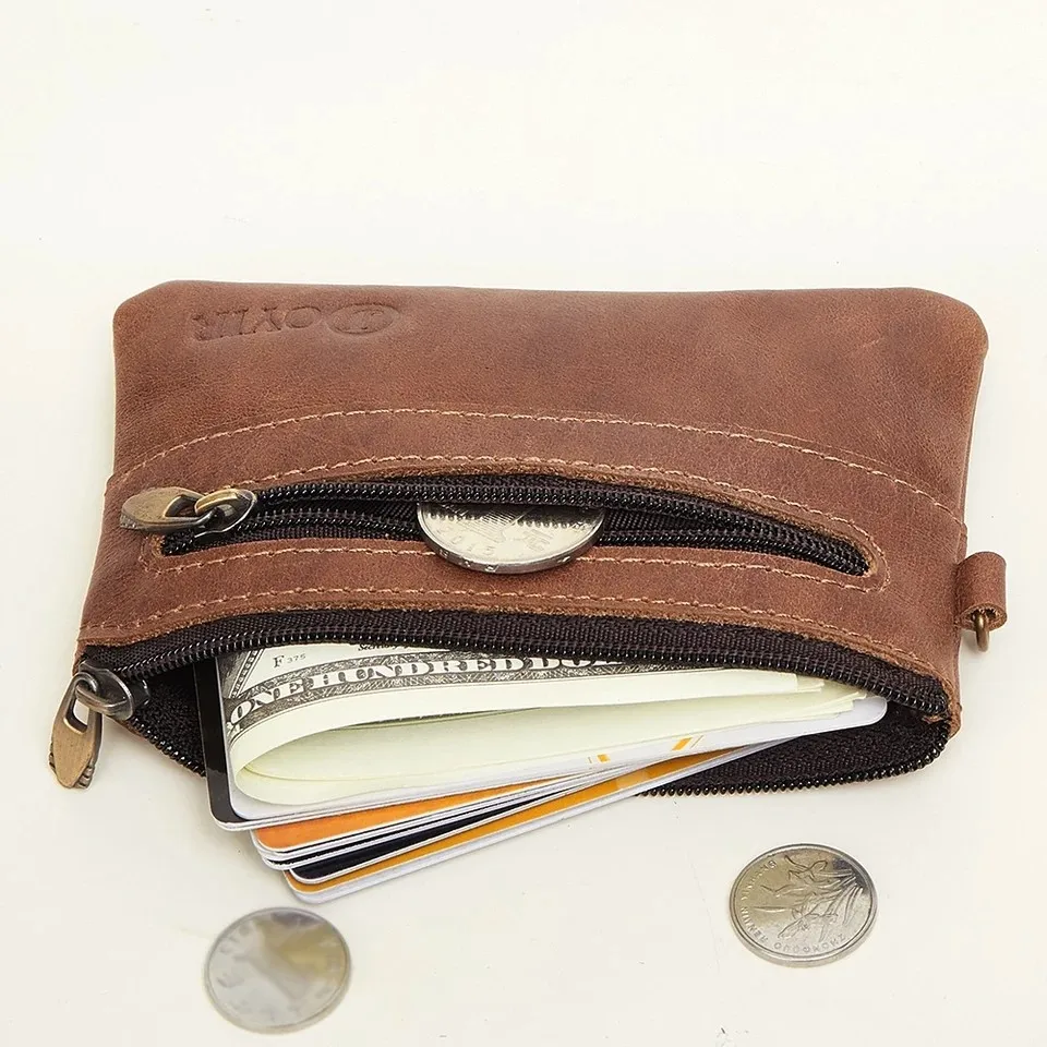 JOYIR de cuero genuino Slim carteras monederos con cremallera monedero corto hombre tarjeta monedero titular de la clave de los hombres pequeños Mini cartera para los hombres