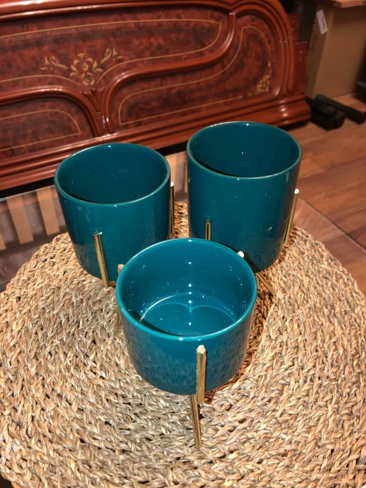 Juego de 3 uds. De jardineras de cerámica con estante de hierro para plantas suculentas, florero de cerámica de escritorio, decoración de jardín y hogar