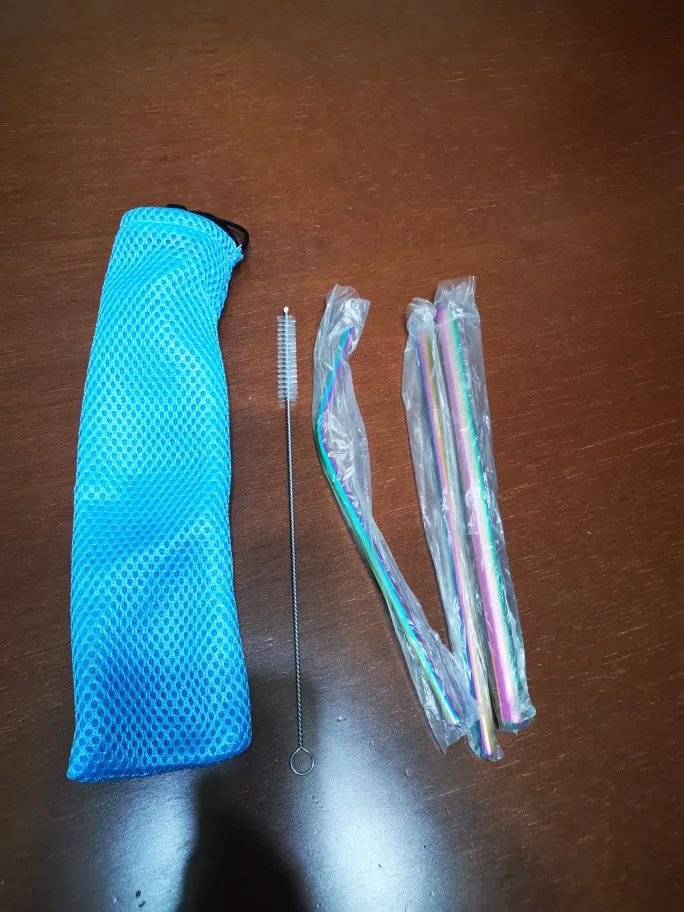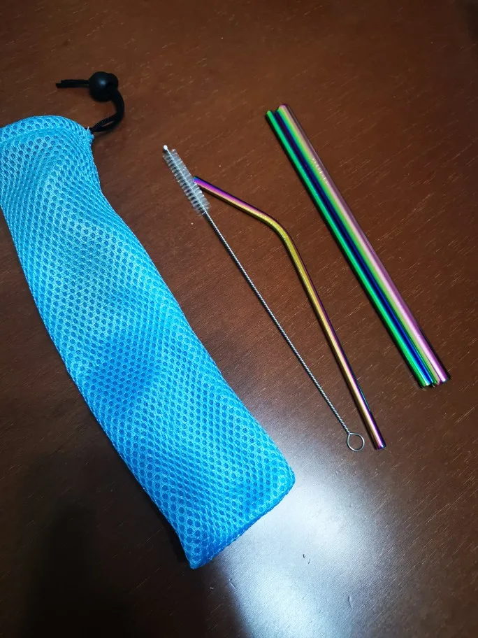 Juego de 5 uds. De pajitas reutilizables para beber con burbujas de té de acero inoxidable, bolsa de pajitas de Metal curvado con cepillo para batidos, zumo y té