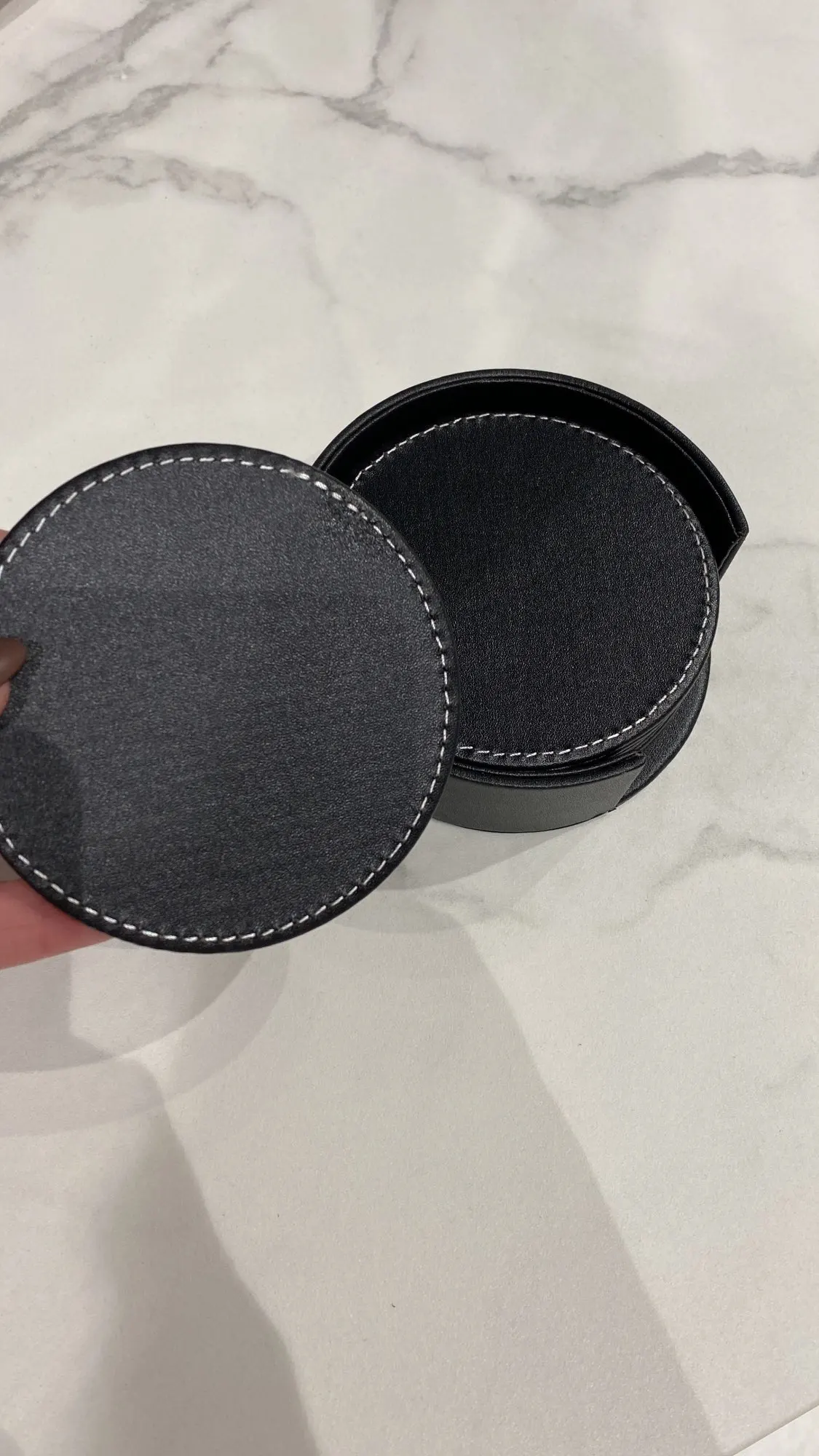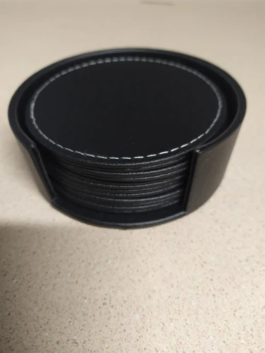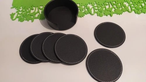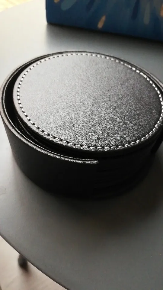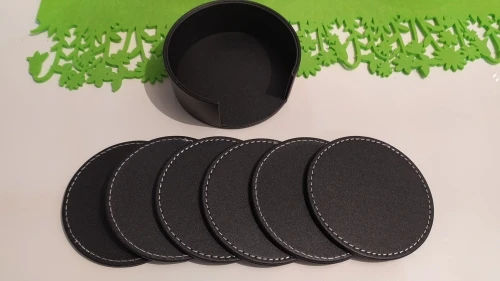 Juego de 6 posavasos para bebidas de cuero, posavasos redondos para el hogar y uso de la cocina en negro