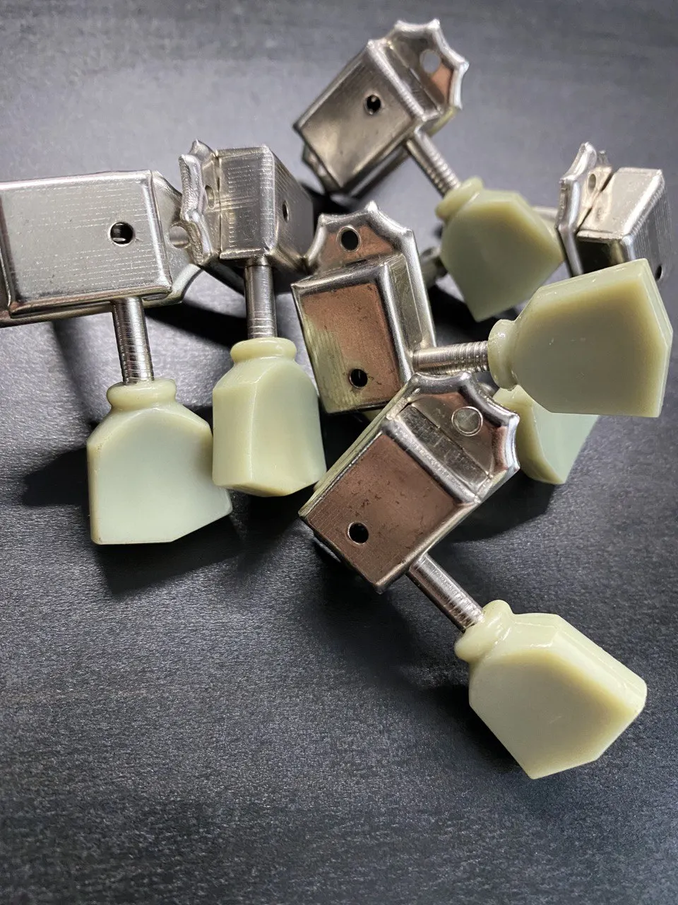 Juego de 6 unidades de botones trapezoidales Retro de Jade verde, clavijas de ajuste de cuerda bloqueadas, clavijas de afinación, cabezal de la máquina para bloqueo de guitarra, estilo Schaller