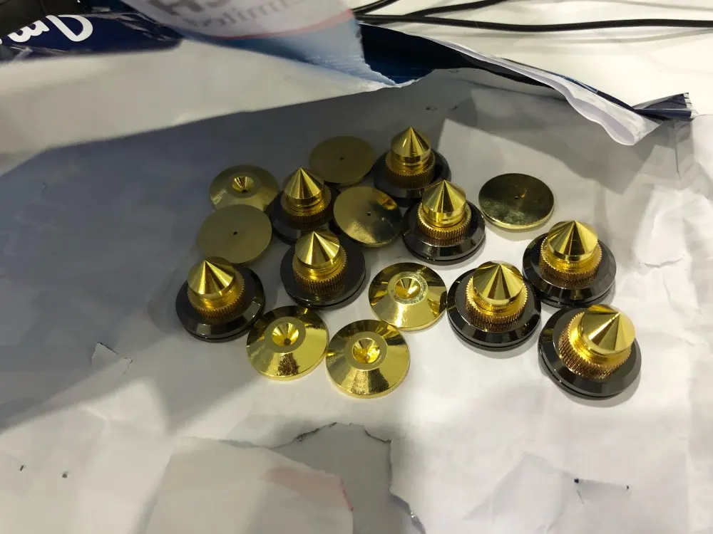 Juego de altavoces portátiles dorados, soporte para altavoces, piezas de reparación, bricolaje, Universal, sonido de fiebre, clavos de choque, 8 unidades