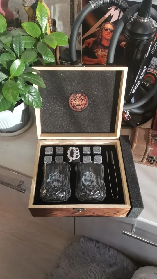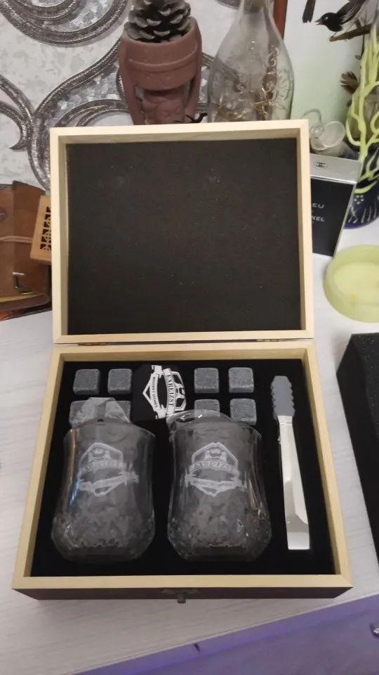 Juego de Cajas de Regalo con piedras de Whisky y Whisky, 8 rocas de Whisky enfriadoras de granito + 2 vasos en caja de madera, el mejor regalo para hombres Fa