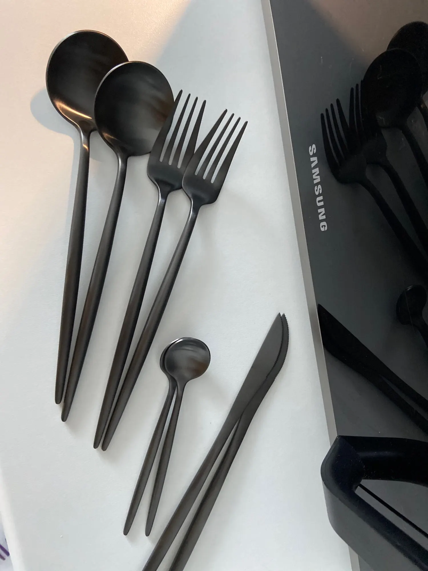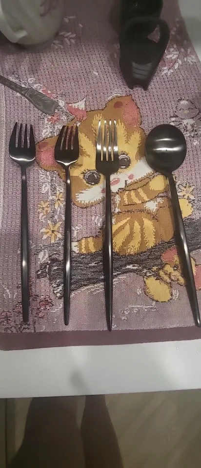Juego de cubiertos de cocina, set de cubertería en acero inoxidable en color negro mate para carne, vajilla, cuchara, tenedor, cuchillo, palillos