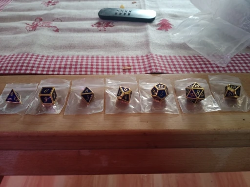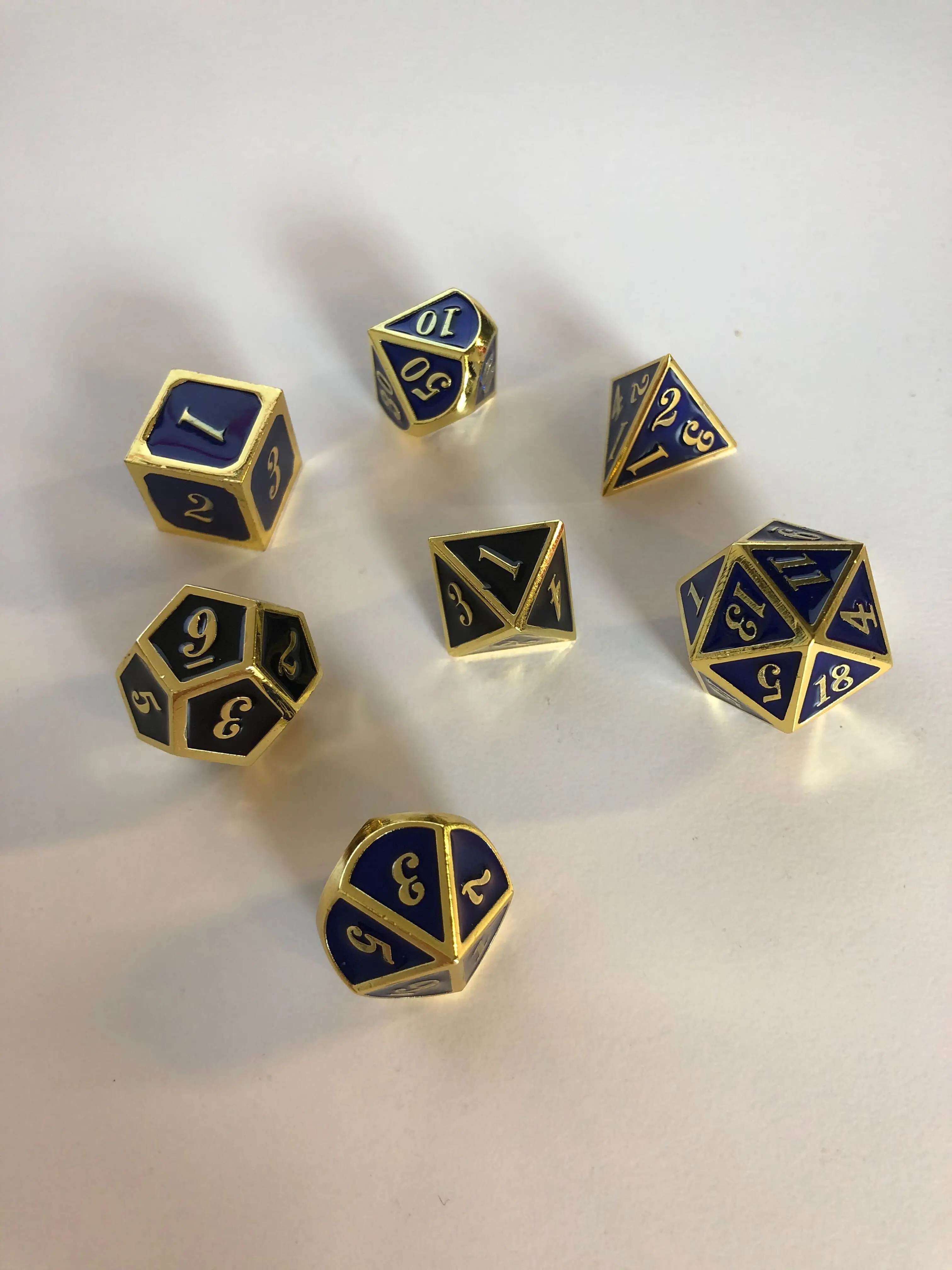 Juego de dados de Metal para juego de mazmorras y dragones, 7 dados de Metal dorados y azules para juegos de mazmorras y dragones, esmalte brillante