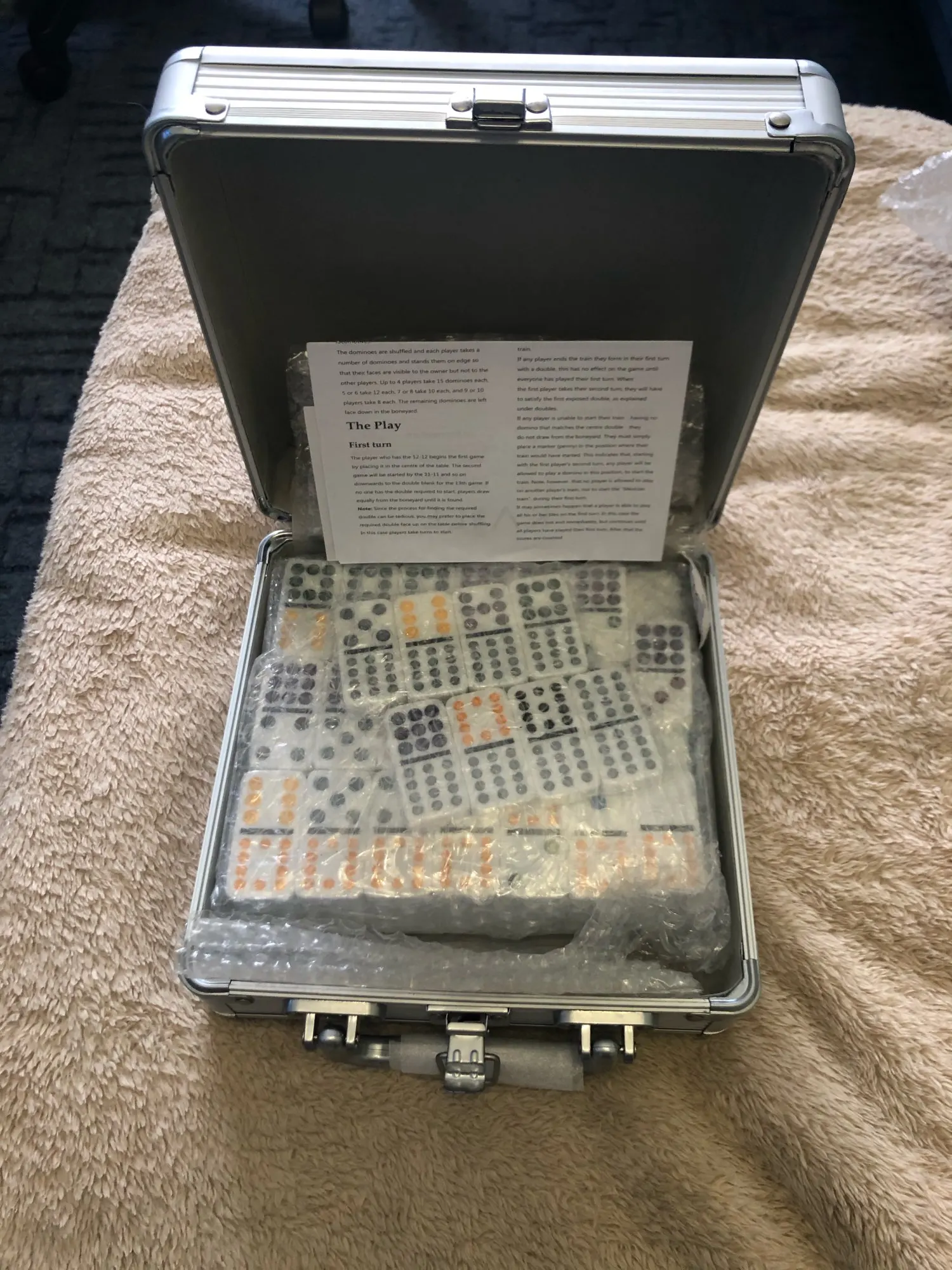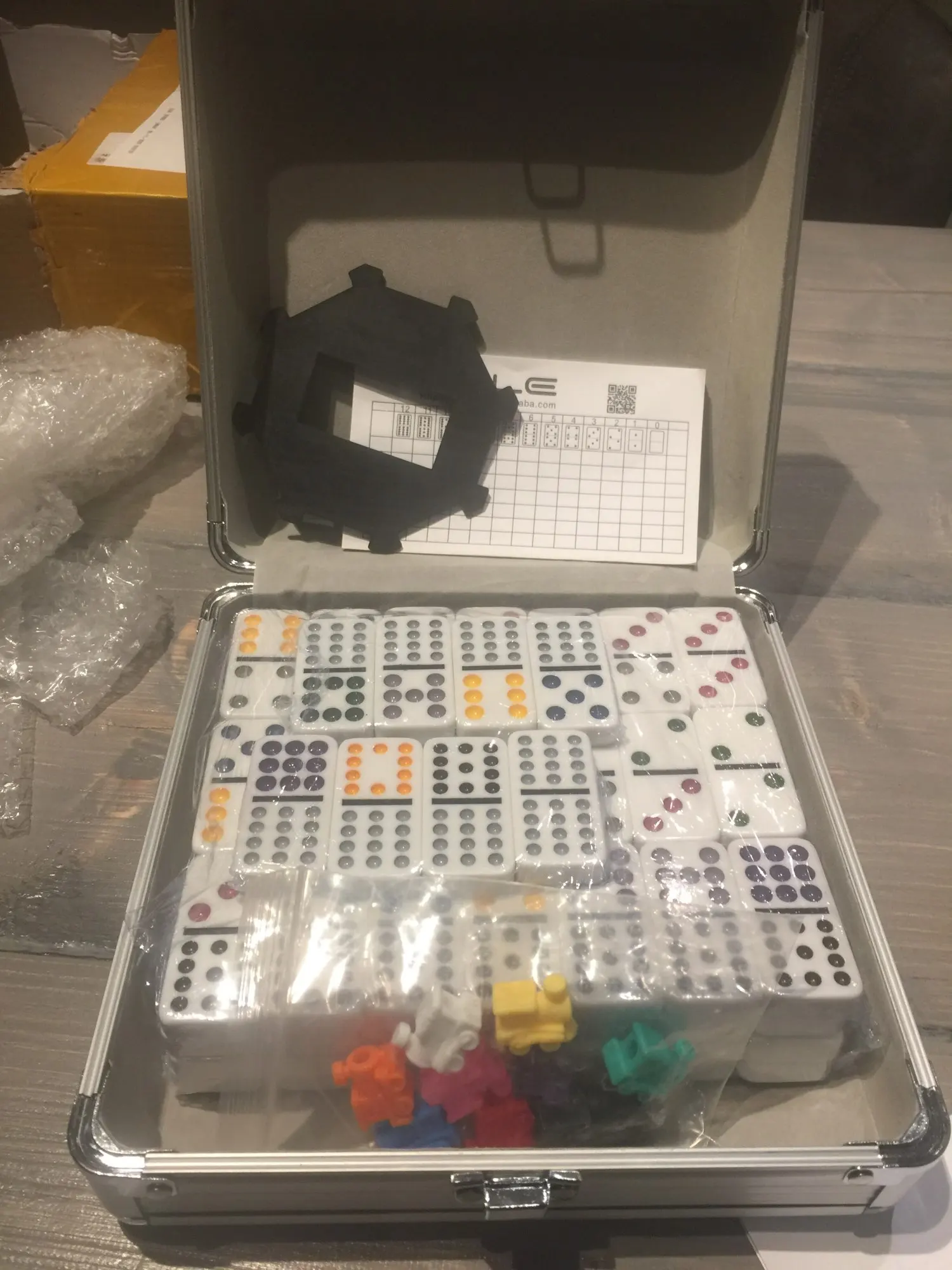 Juego de dominó de tren mexicano en una caja de aluminio