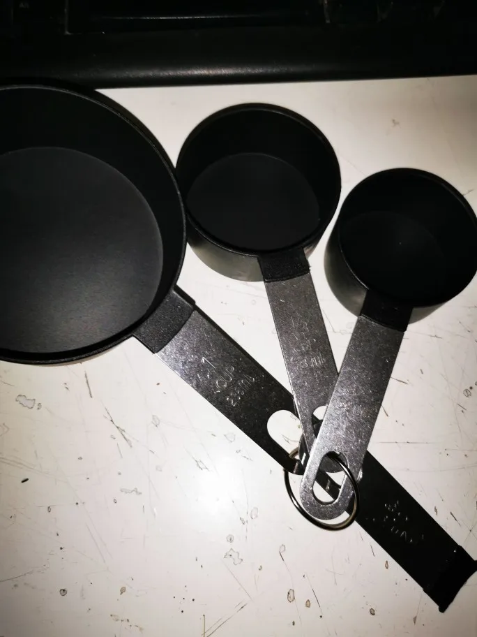 Juego de Herramientas de medición de acero inoxidable, cucharón de plástico, taza medidora para hornear, color negro, chapado en cobre, Retro, 4 / 8 Uds.