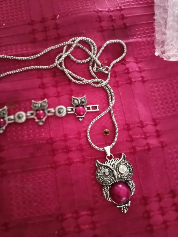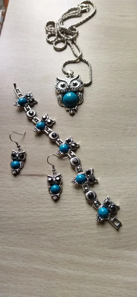 Juego de joyas con motivo de búho para mujer, colgante, collar, pulsera, pendientes, accesorios