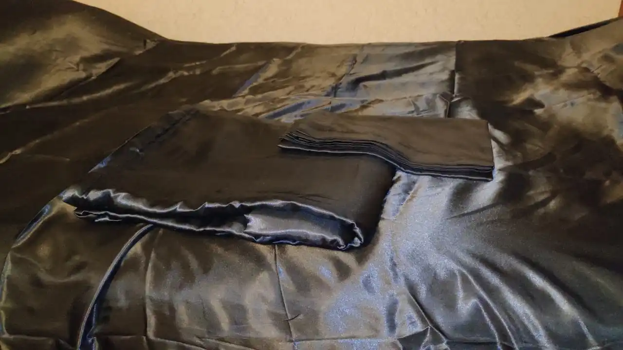 Juego de ropa de cama de seda con funda de edredón, funda de almohada de satén de lujo, tamaño doble King y Queen, color negro satinado