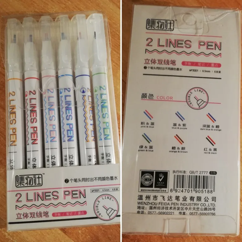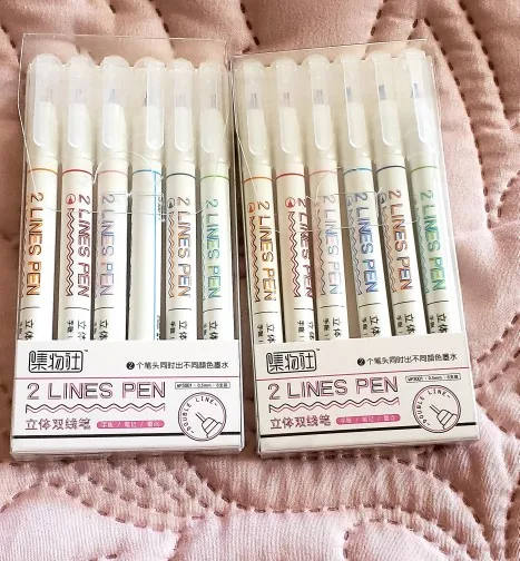 Juego de rotuladores de doble línea, rotuladores artísticos para dibujo, libros de recortes, papelería, oficina y escuela, color rojo y azul, 2 líneas de tinta, F768