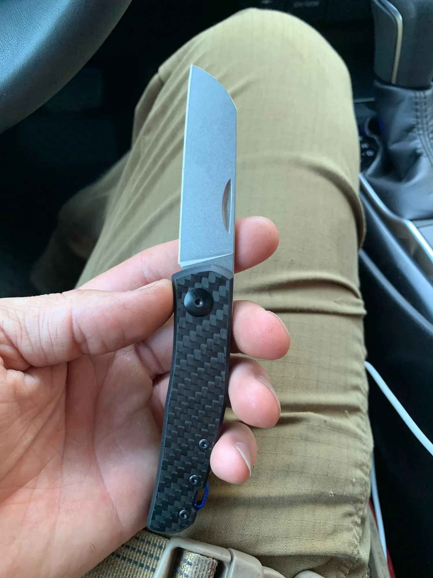 ¡Tal y como se describe en la app! Buen filo. No lleva bloqueo de la hoja