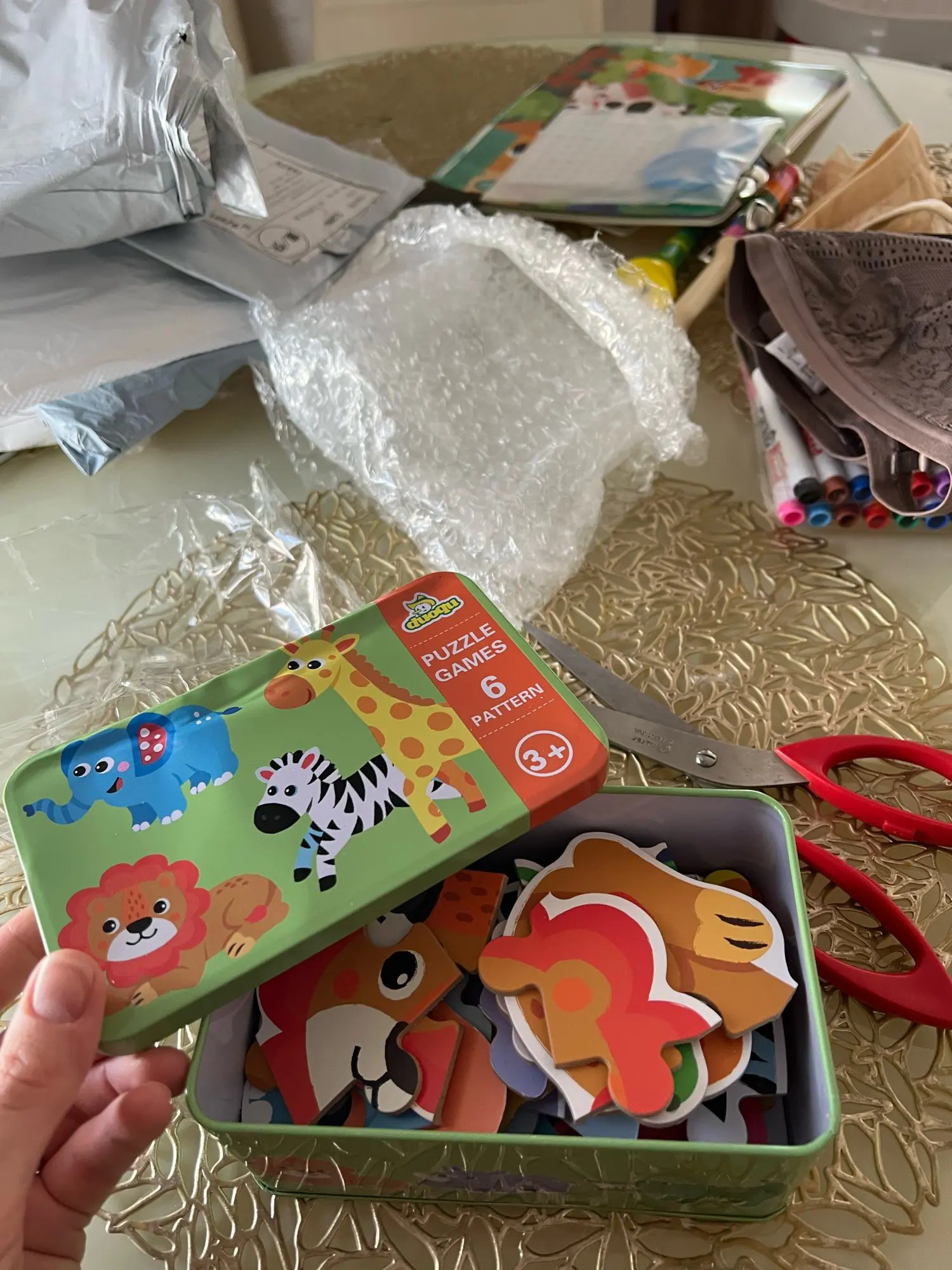 Juguete de rompecabezas para bebé juegos caja de hierro de dibujos animados 3D animales rompecabezas de madera para niños Montessori educación temprana juguetes regalos para los niños