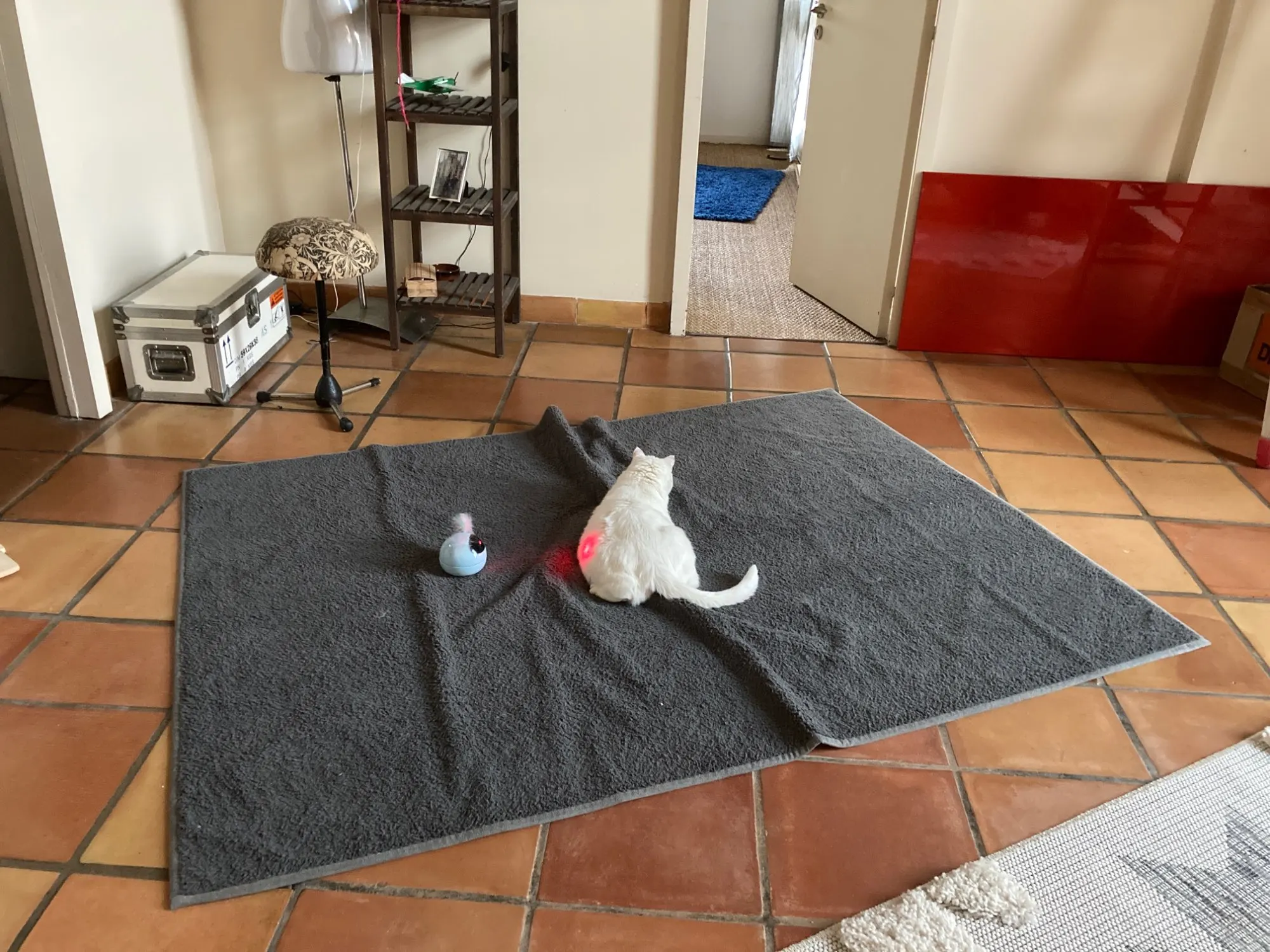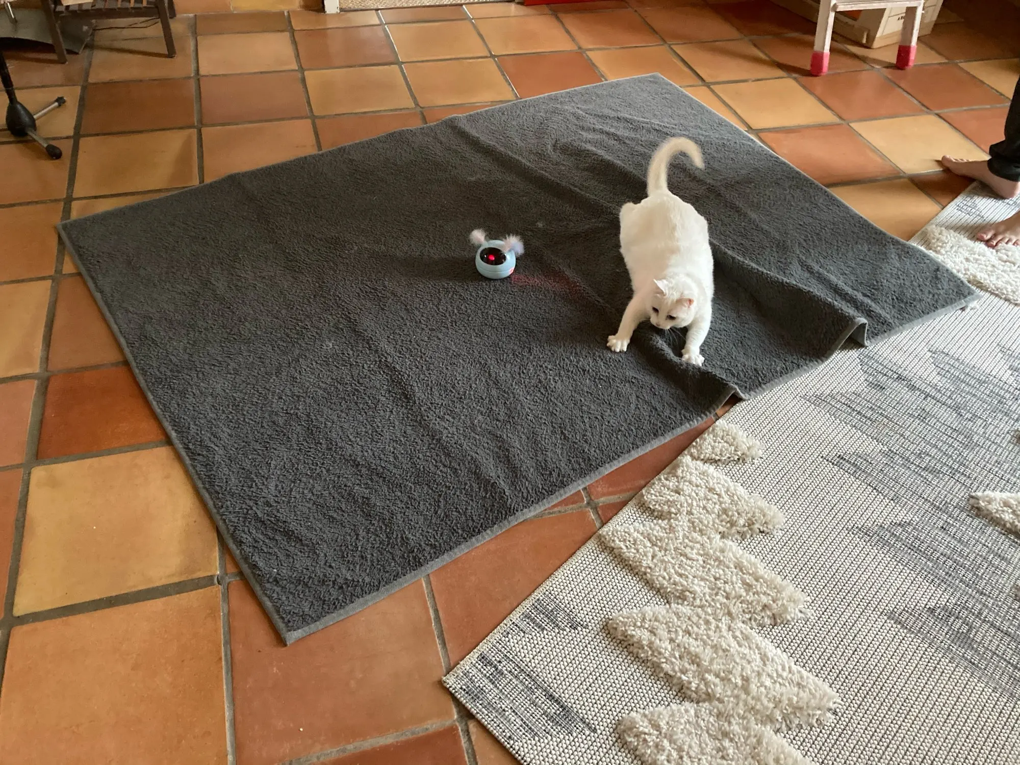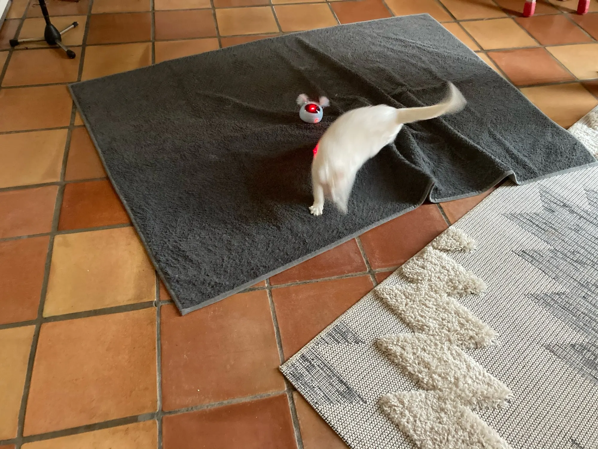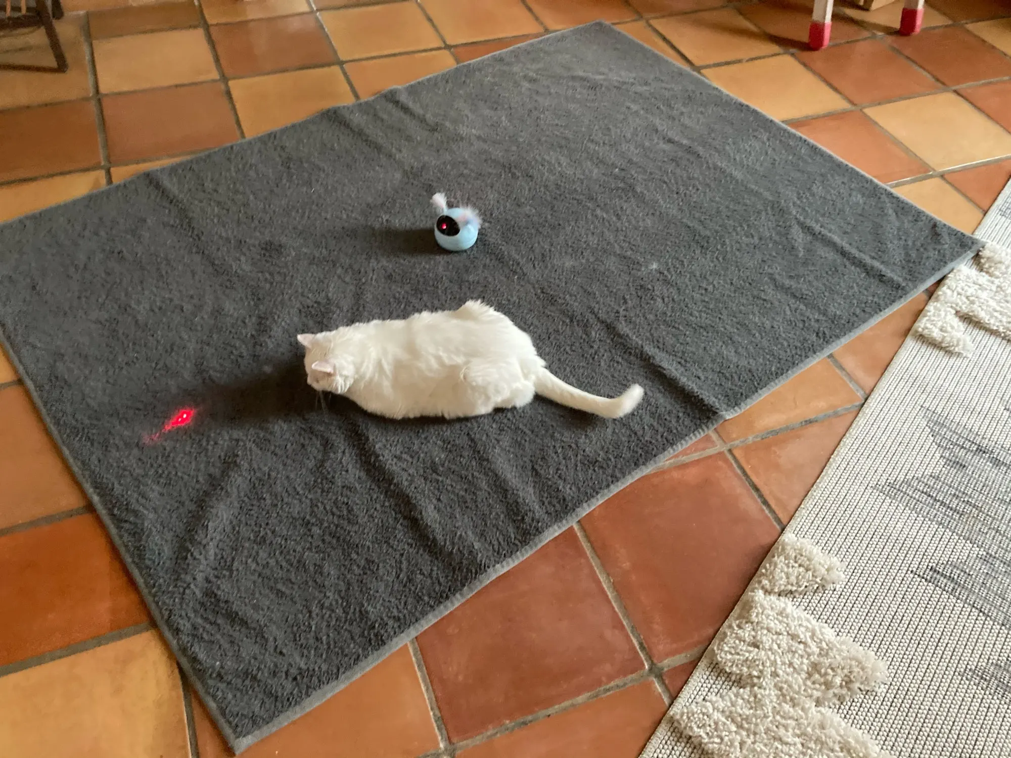 Se le acaban las pilas en 3 días pero también es porque le he dado uso. El gato muy entretenido con su nuevo juguete.