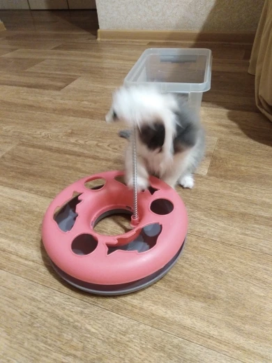 Genial mi gato encantado con su nuevo juguete...además puedes meter premios donde está la bola para que estén más entretenidos. Muy contenta lo recomiendo 100%.Gracias por la pajarita de regalo aunque le queda muy grande ji ji ji pero es todo un detallazo.