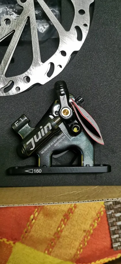 Juin Tech-freno de disco de bicicleta F1, calibrador de línea de tracción, frenos hidráulicos, MTB XC, rotores de Freno de bicicleta de montaña de carretera, montaje plano de 160mm