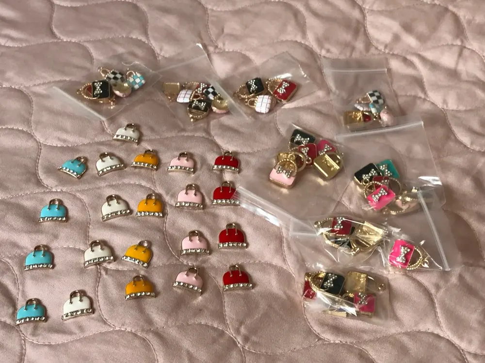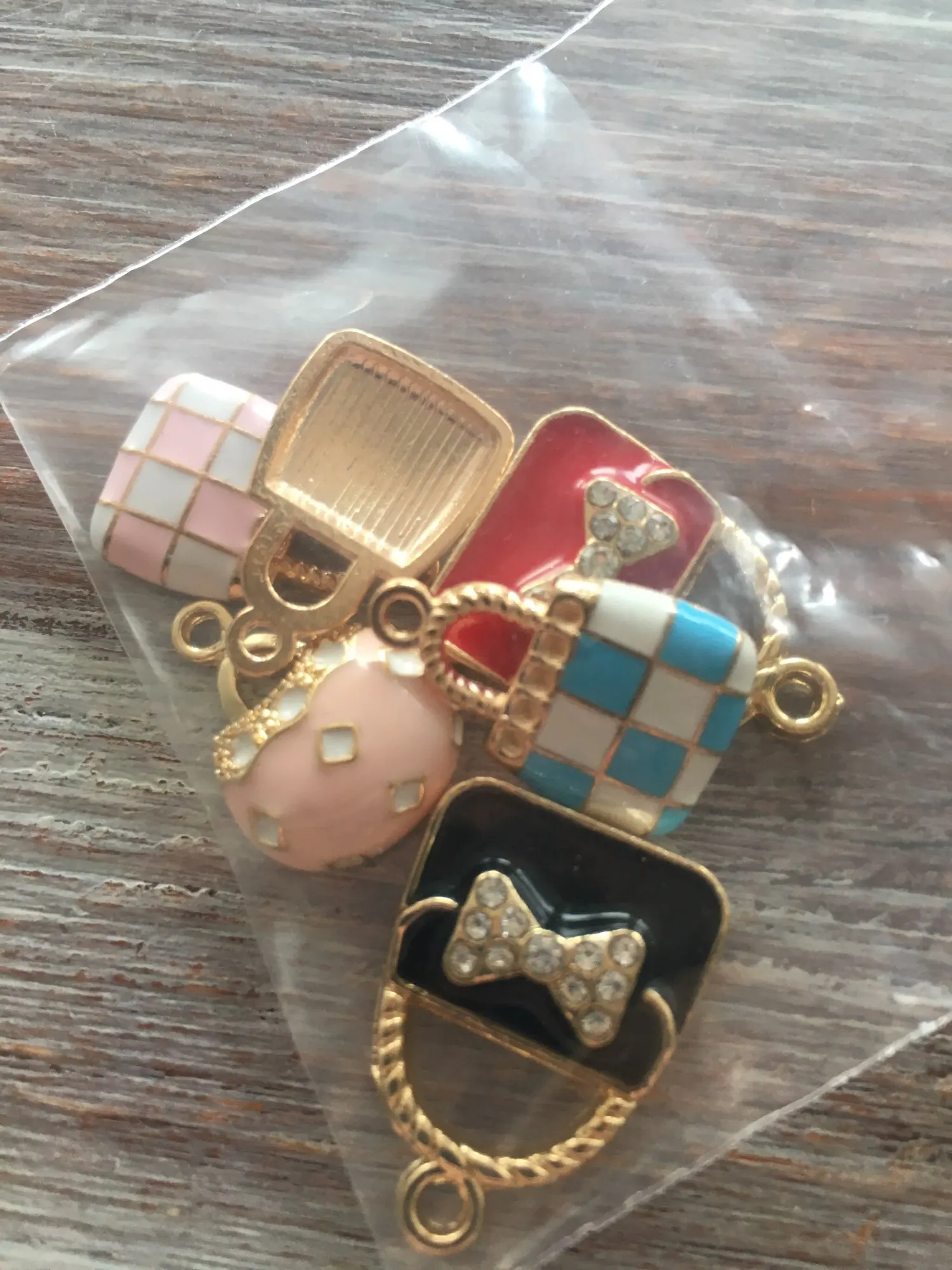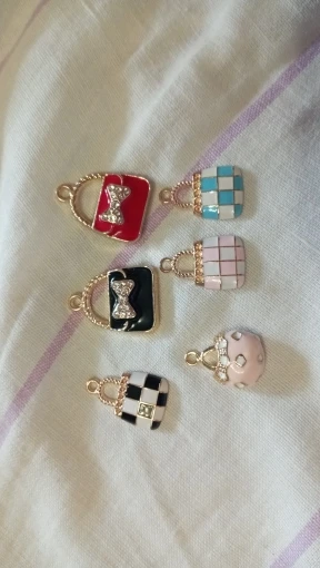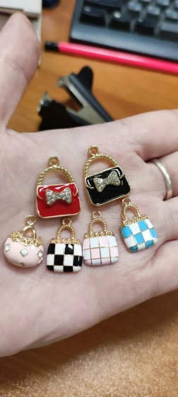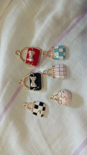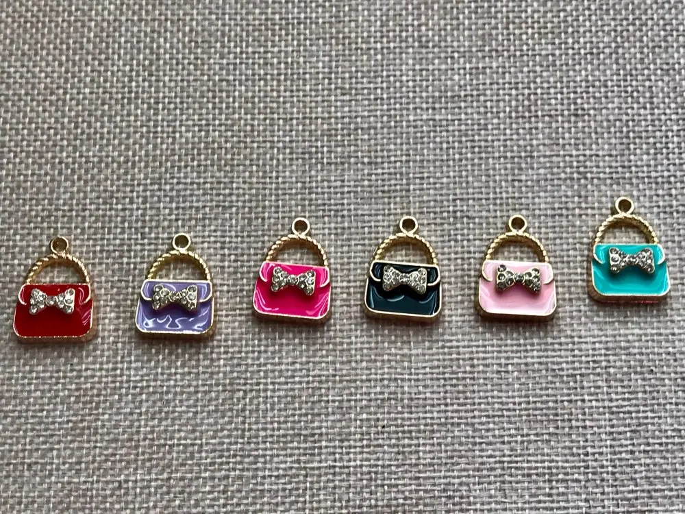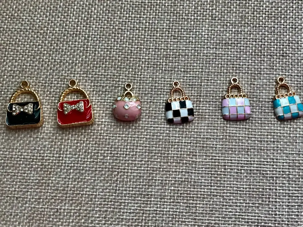 Julie Wang 6 uds esmalte encantos mixto bolso de aleación de oro tono mujeres colgante de bolsa o monedero de la joyería de la pulsera accesorio de hacer