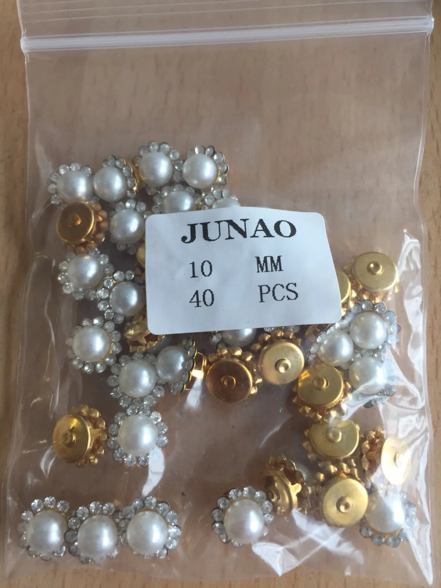 JUNAO-diamantes de imitación redondos para costura, piedras acrílicas, apliques de garra dorada en miniatura, perlas de perlas, flores, 8, 10 y 12 mm