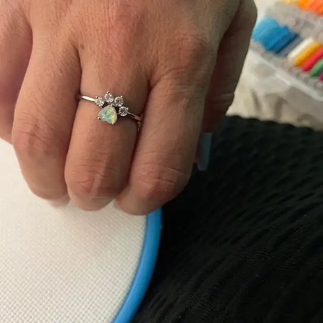 JUNXIN fuego blanco Opal piedra huella Animal anillos para las mujeres de oro rosa/plata Color CZ gato perro pata corazón pet anillo garras joyería