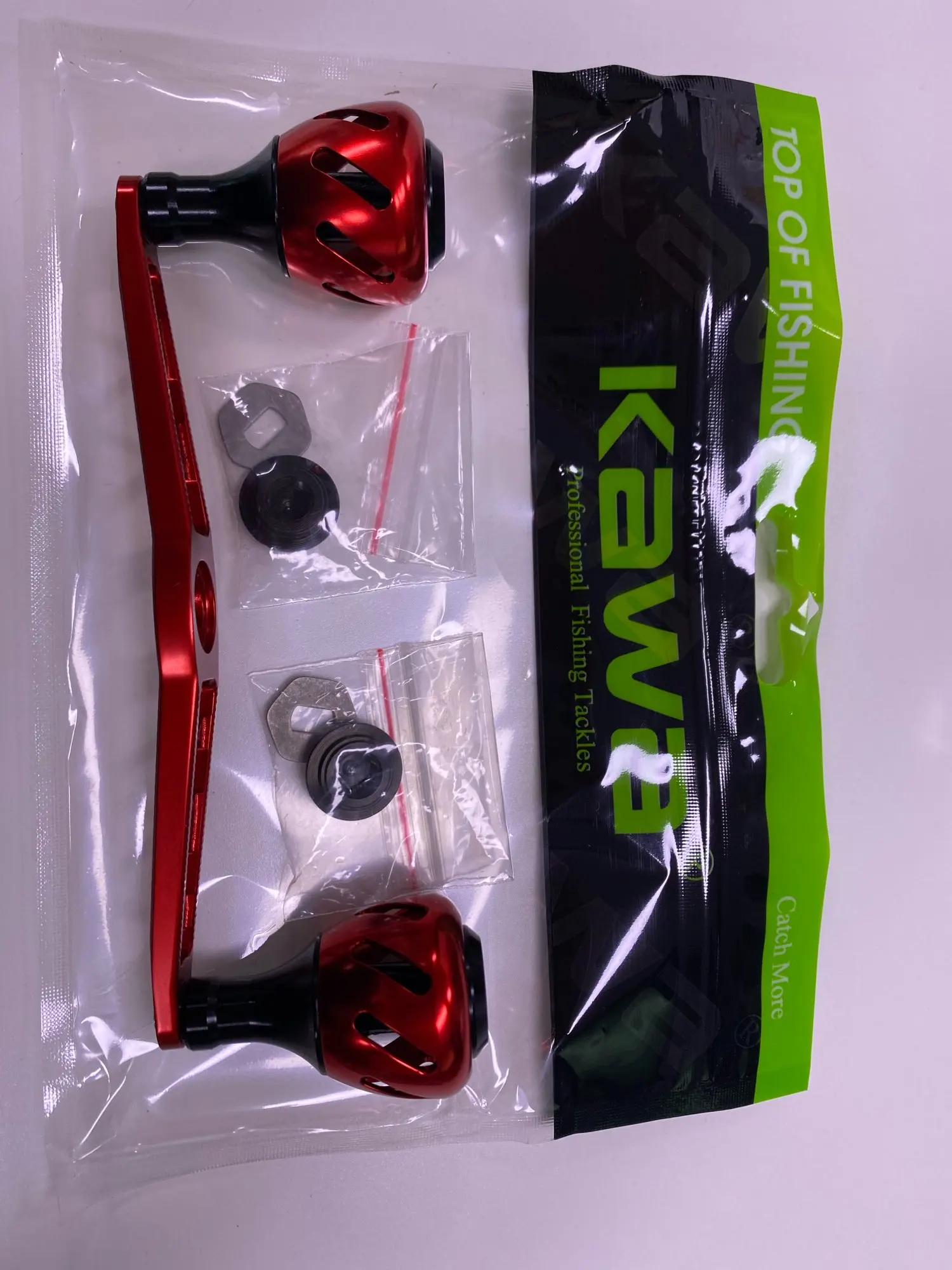 Kawa-mango de carrete de pesca, Material de aleación, rueda de pesca, orificio de doble Mango, tamaño 8*5/7*4mm, longitud de 130mm, peso de 52g