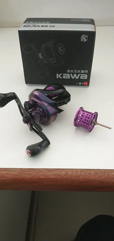 Kawa pesca Baitcast rollo de aluminio de dos carretes de Max Drag 8kg 7 + 1 rodamientos relación 7,3: 1 latón principal Eje del engranaje mango de aleación