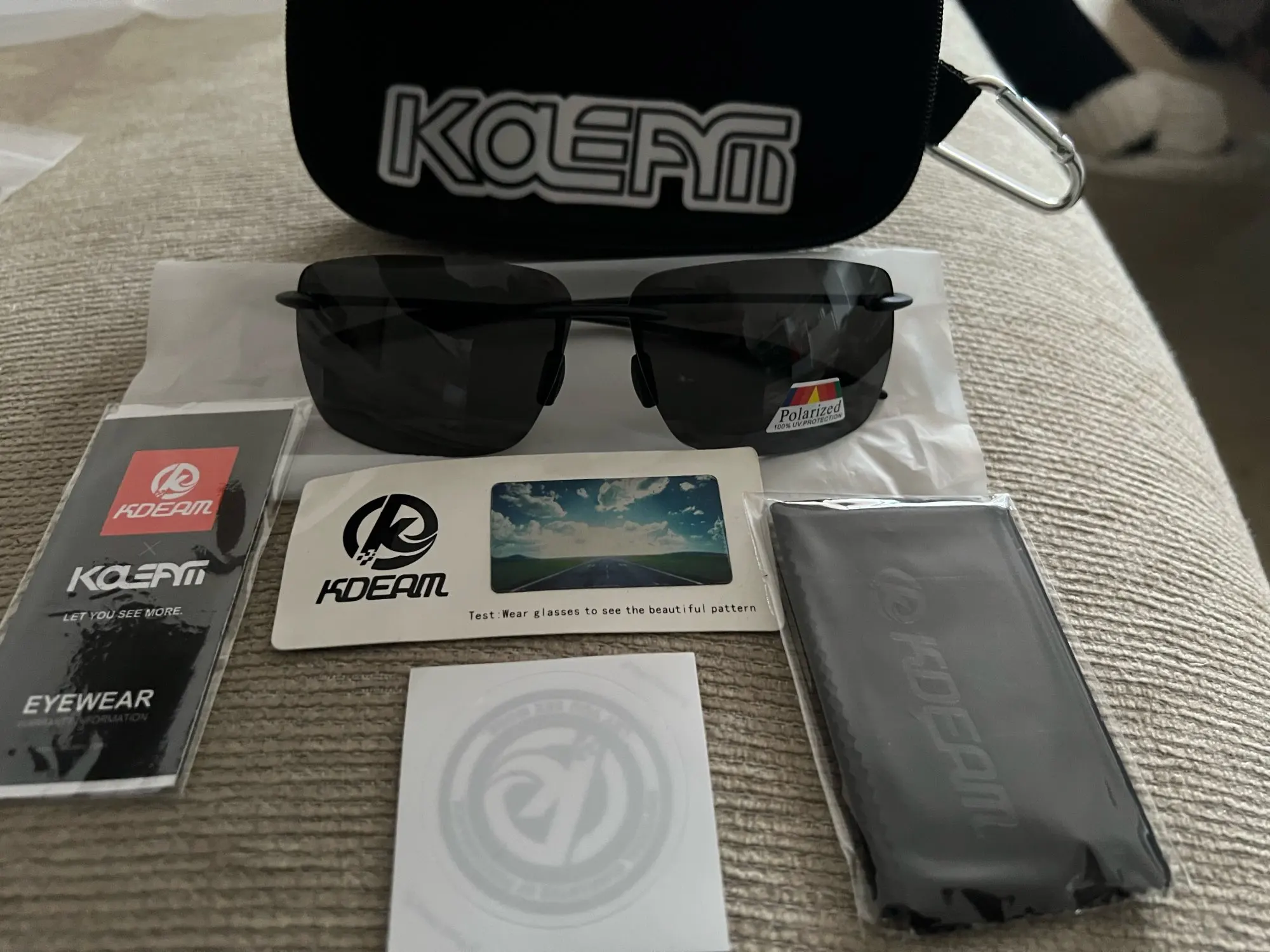 KDEAM-gafas de sol sin montura rectangulares para hombre, lentes de sol polarizadas ultraligeras TR90, con montura UV400, deportivas