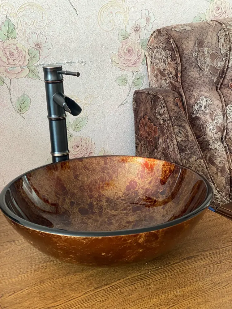 KEMAIDI-grifo negro de bambú para lavabo, mezclador de agua de latón sólido CON MEZCLADOR de agua caliente y fría, para baño y lavabo de vidrio, modelo 2015