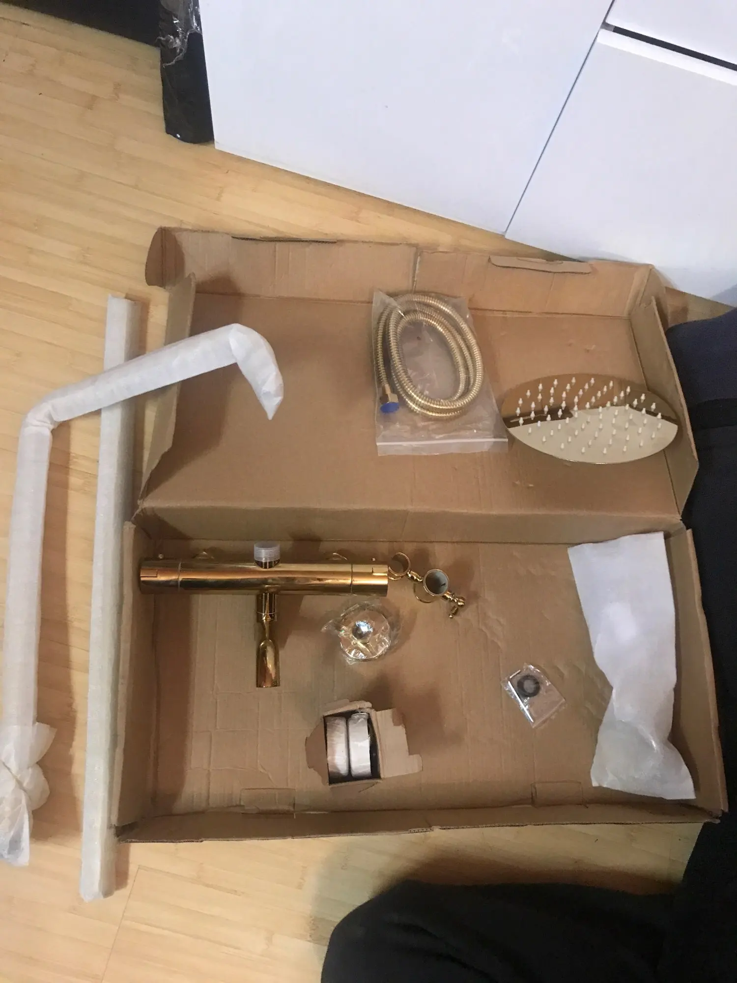 KEMAIDI-grifo termostático de ducha para bañera, grifo de ducha bañado en oro, mezclador de cabezal de ducha de 3 vías, juego de grifos de ducha